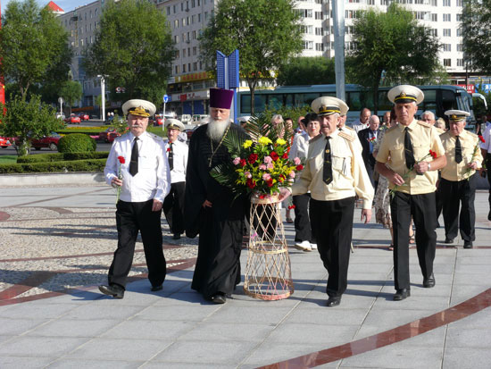 В составе делегации были: руководитель отдела Владивостокской епархии по взаимодействию с Вооружёнными Силами РФ протоиерей Виктор Жильцов; руководитель Ветеранской организации города Владивостока Яков Григорьевич Кан; ветераны Великой Отечественной войны; представители администрации Владивостока, общественных и молодежных организаций.