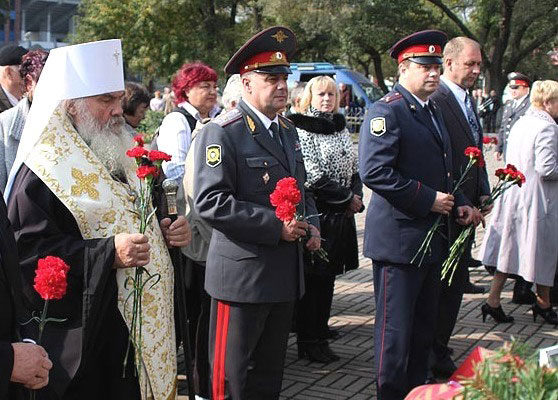 В своем архипастырском слове Его Высокопреосвященство почтил память всех погибших. В этом году День памяти сотрудников УВД отмечали в 15-й раз – памятная дата 15-е октября была установлена в 1997 году; двумя годами позже, в 1999 г. на этом месте был открыт и мемориал (скульптор Валерий Геннадьевич Ненаживин). С тех пор каждый год на мемориале памяти у Свято-Игоревского храма полицейские зажигают поминальные свечи. В Приморье проживает около 150 семей, в которых поминают сотрудников УВД, погибших, в том числе, в ходе службы в Северокавказском регионе.
