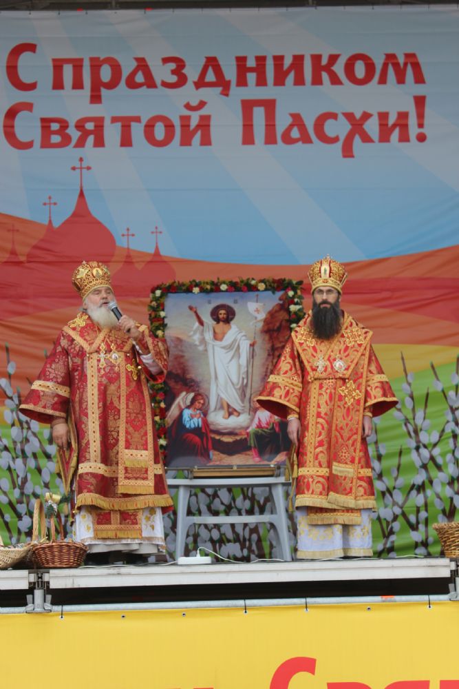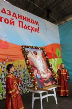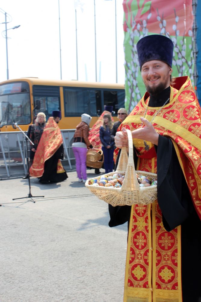 Священники раздали верующим символ пасхальной радости – крашенное куриное яйцо. При содействии городской администрации, в честь праздника Пасхи на центральной площади состоялись выступления творческих коллективов, прошли народные гуляния.