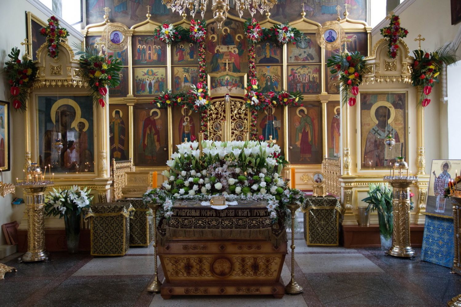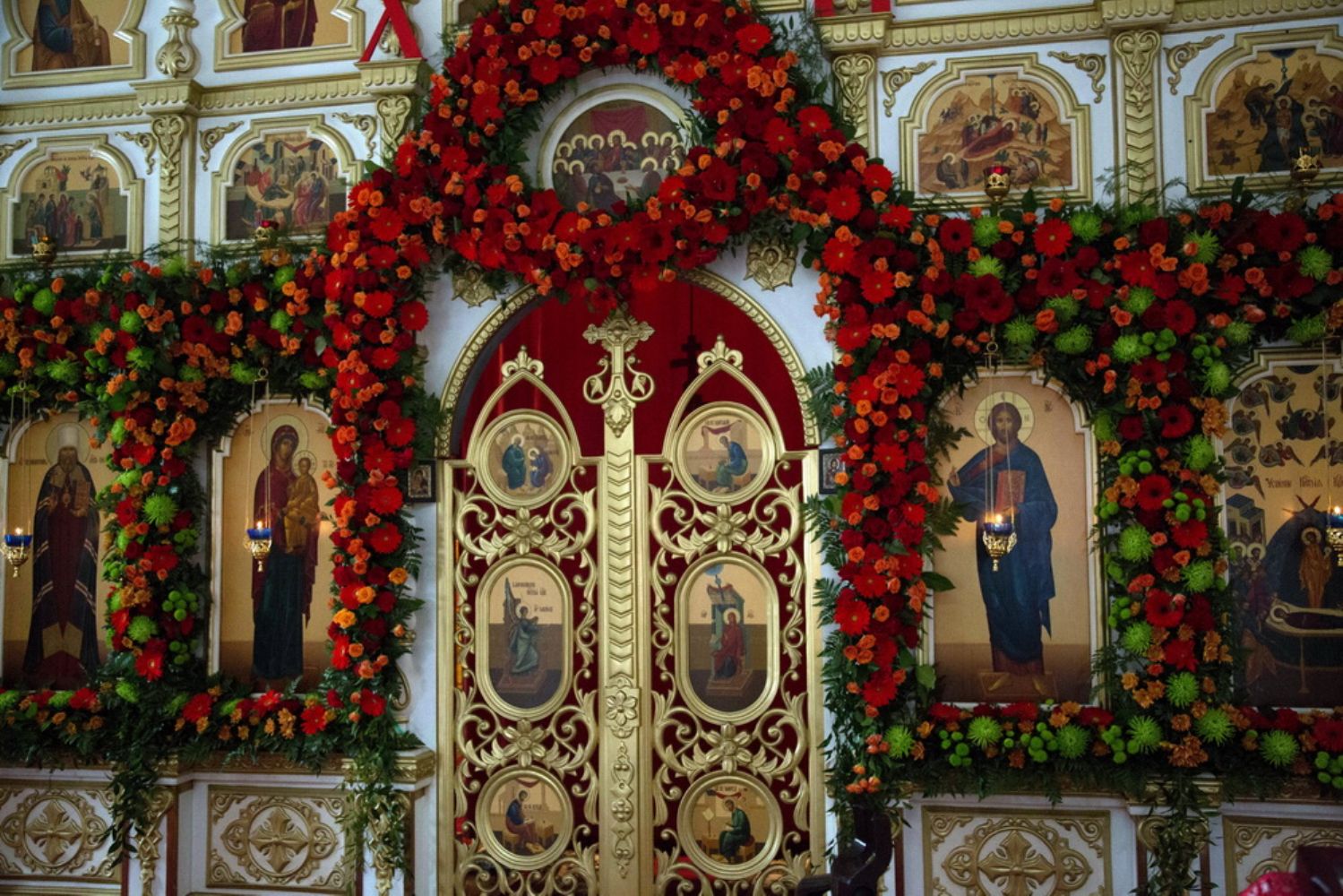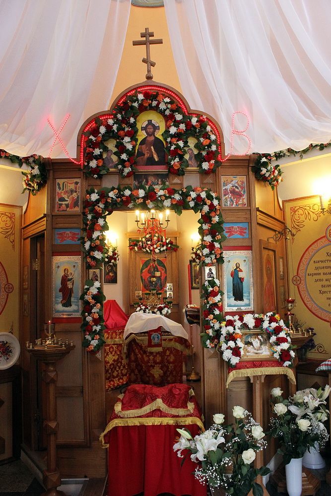 Украшения из цветов размещают на иконостасах, вокруг икон, на Святых Плащаницах.
