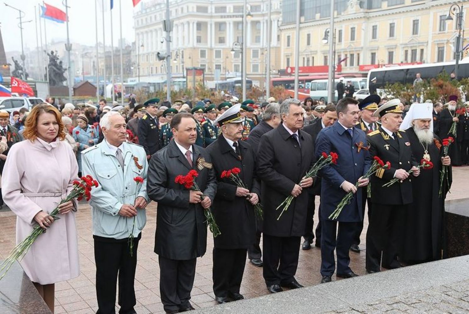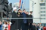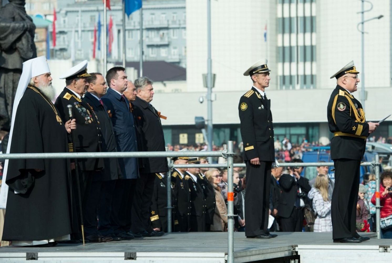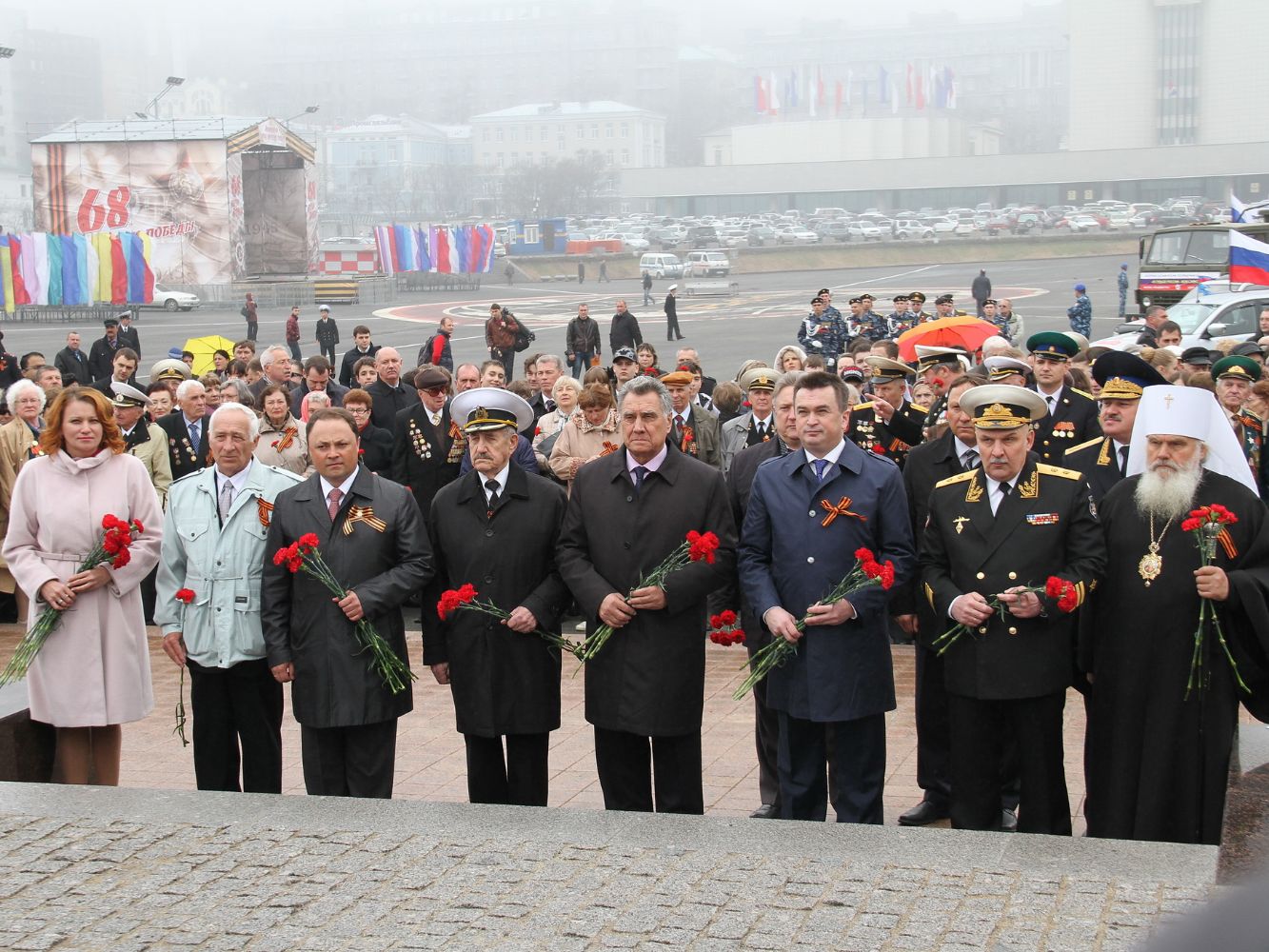 Владивосток. По приглашению губернатора Приморского края В.В. Миклушевского и командующего ТОФ вице-адмирала С.И. Авакянца, Митрополит Владивостокский и Приморский Вениамин присутствовал на праздничном параде войск и военной техники Владивостокского гарнизона и торжественном шествии, состоявшихся сегодня, 9 мая 2013 года, на центральной площади города по случаю празднования 68-й годовщины Победы в Великой Отечественной войне.