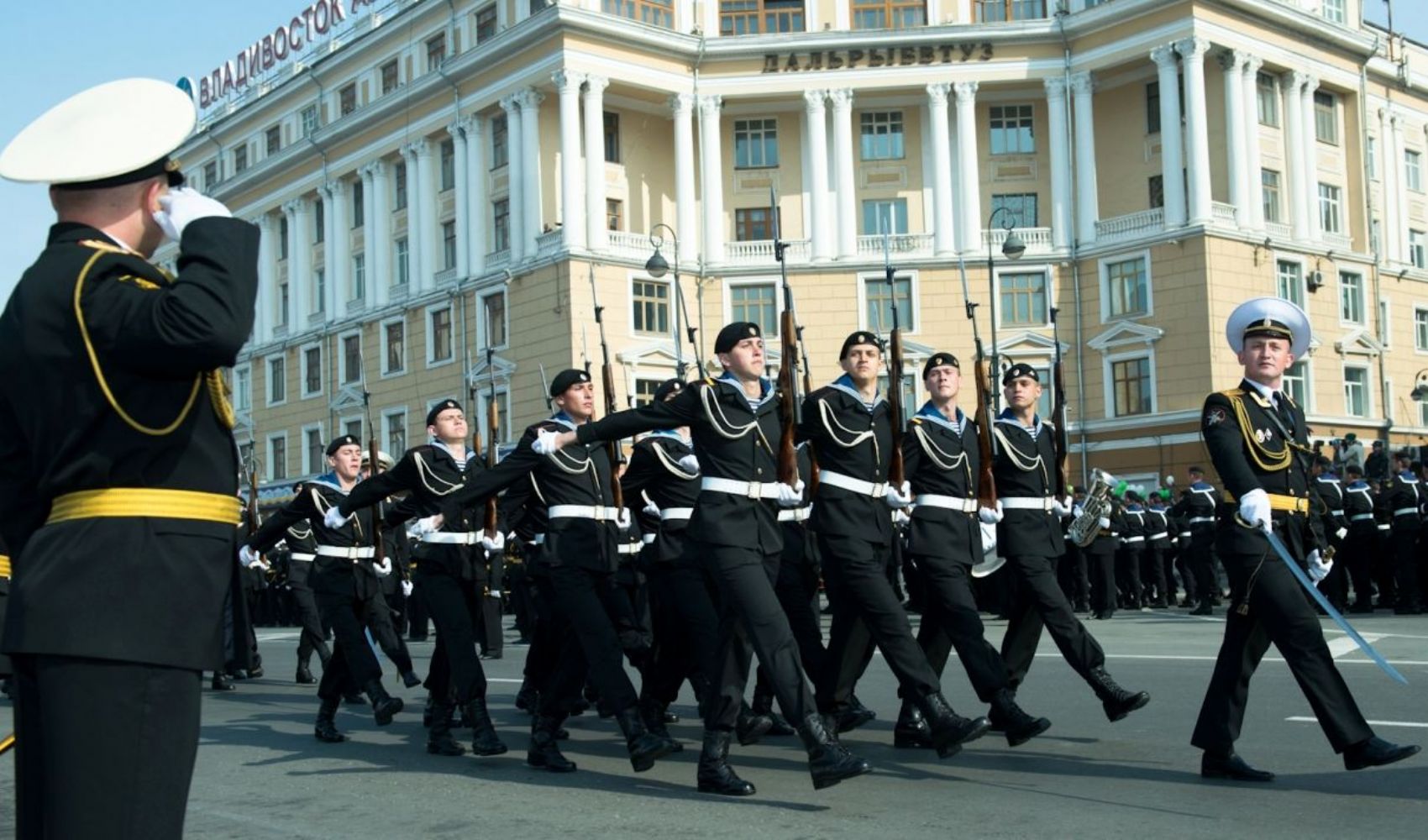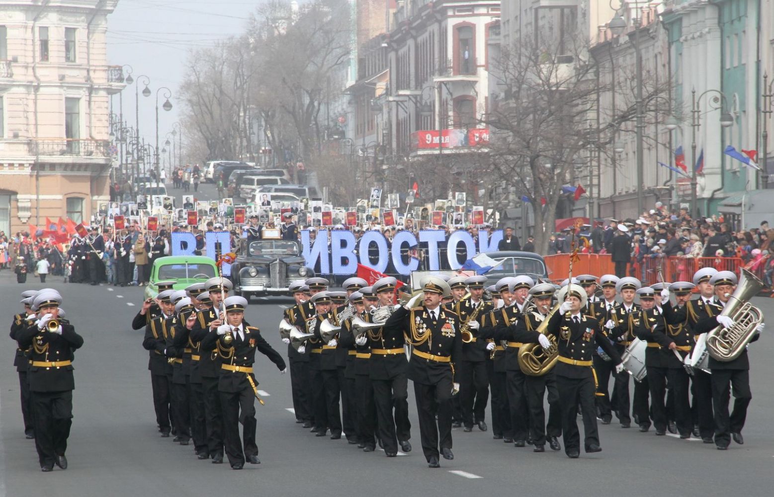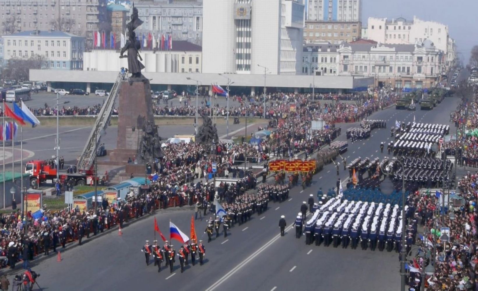 Владивосток. По приглашению губернатора Приморского края В.В. Миклушевского и командующего ТОФ вице-адмирала С.И. Авакянца, Митрополит Владивостокский и Приморский Вениамин присутствовал на праздничном параде войск и военной техники Владивостокского гарнизона и торжественном шествии, состоявшихся сегодня, 9 мая 2013 года, на центральной площади города по случаю празднования 68-й годовщины Победы в Великой Отечественной войне.