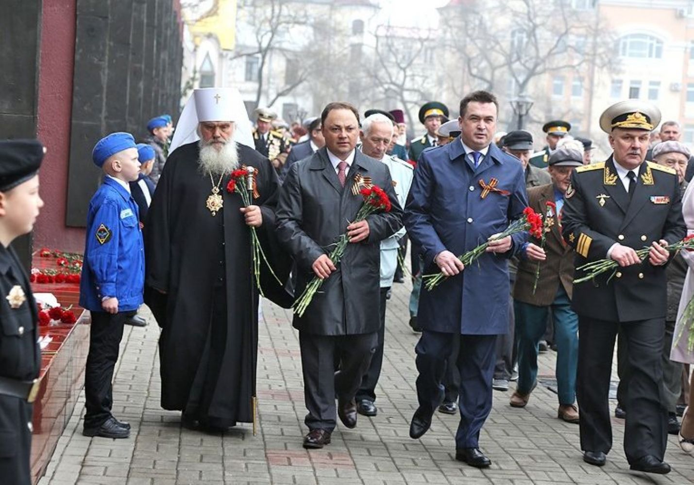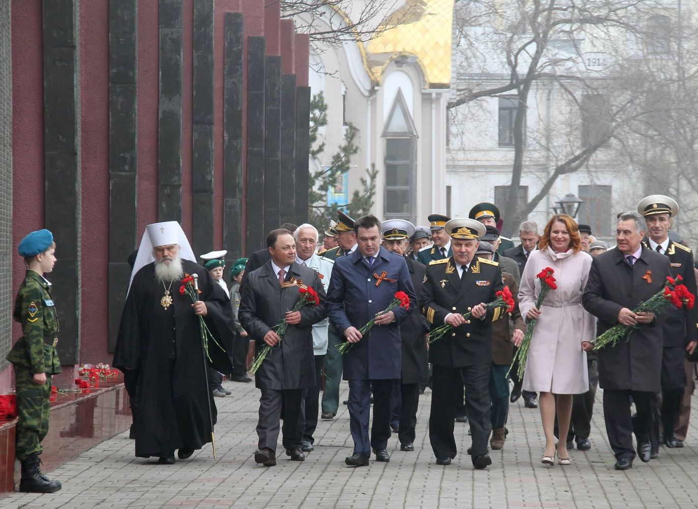 Накануне, 8 мая, правящий архиерей принял участие в церемонии возложения цветов к Стеле "Город воинской славы", к Стене памяти приморцев; и возложения гирлянды к мемориальному комплексу "Боевая слава ТОФ".