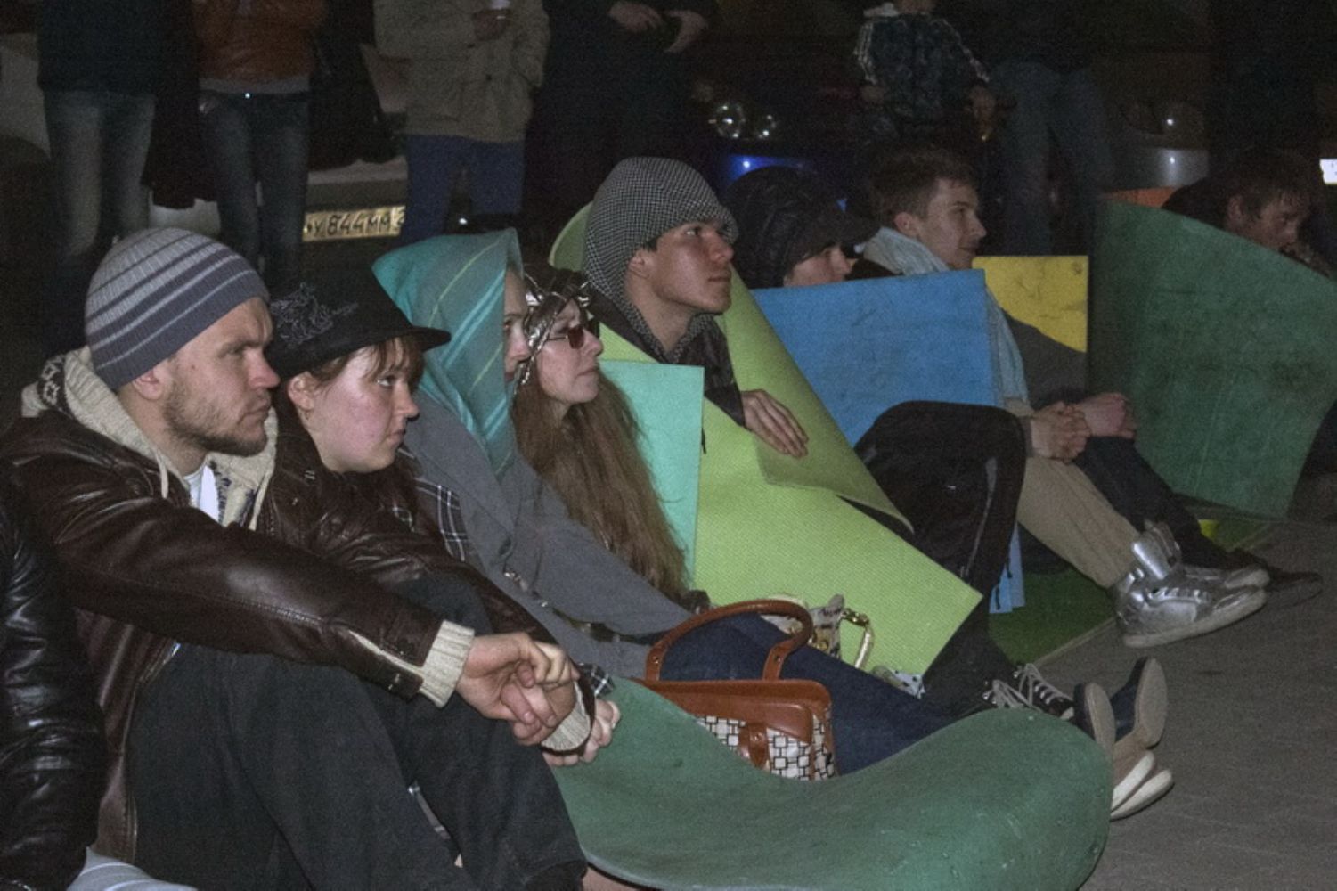 Смотрели известный фильм о Великой Отечественной войне - «Молодая гвардия». Зрители, среди которых была, в основном, молодежь, расположились прямо на земле, на туристических ковриках. Перед началом просмотра организаторы устроили патриотический вечер, на котором читались стихи о войне.