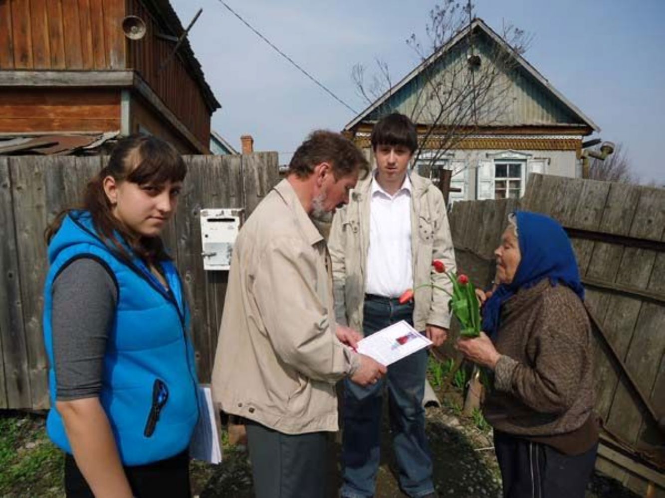 Православные волонтеры вручили ветеранам цветы, шоколад и поздравительные письма.