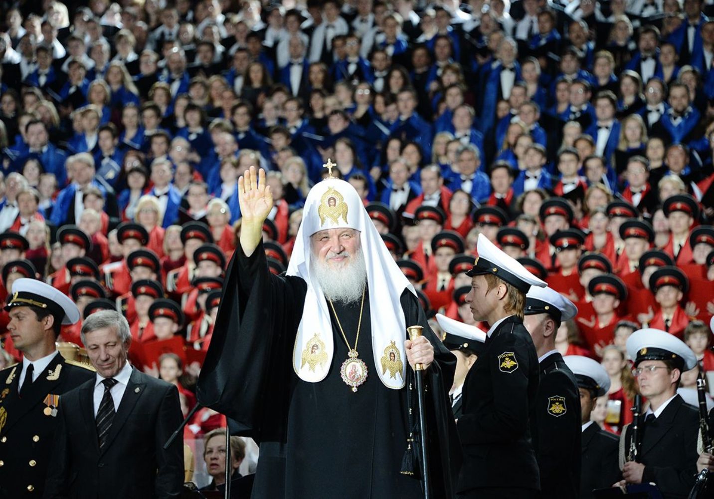 Святейший Патриарх Кирилл со сцены обратился к собравшимся на Красной площади с Первосвятительским словом. Предстоятель Русской Православной Церкви сердечно приветствовал народную артистку СССР А.Н. Пахмутову, поэта Н.Н. Добронравова, заслуженного деятеля искусств России, главного военного дирижера России генерал-лейтенанта В.М. Халилова, художественного руководителя Московского государственного академического камерного хора В.Н. Минина и других дирижеров и исполнителей. Участники концерта поздравили Святейшего Патриарха Кирилла с днем тезоименитства. В концерте участвовали Центральный военный оркестр Министерства обороны РФ, Центральный концертный образцовый оркестр им. Н.А. Римского-Корсакова Военно-морского флота России, детские и юношеские хоровые коллективы.