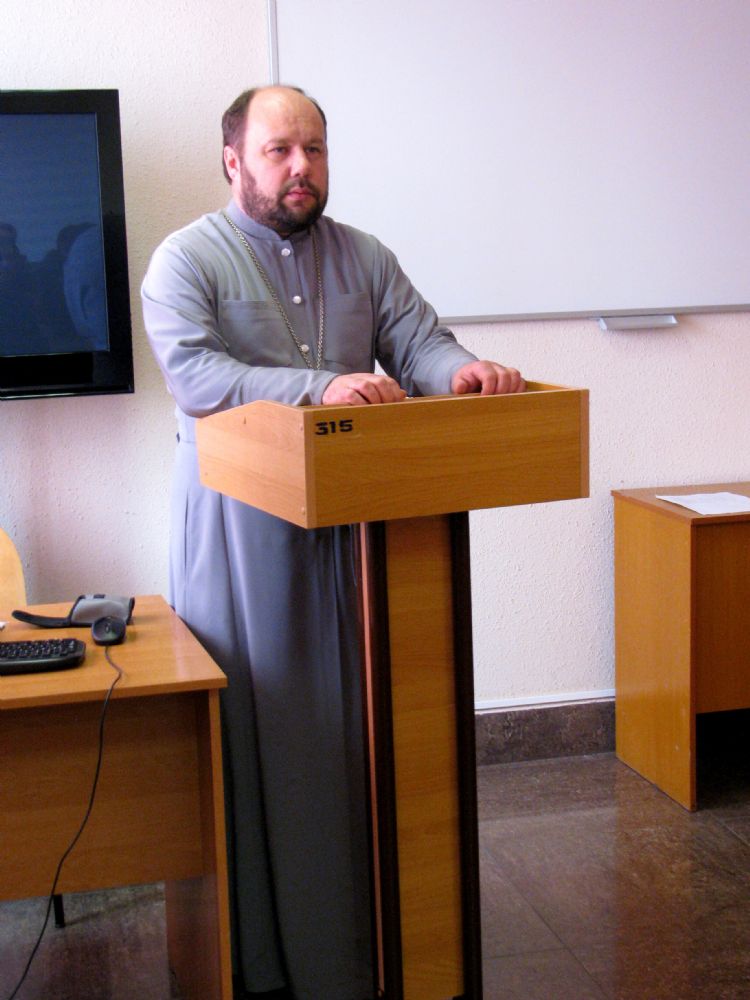 - Встреча заинтересовала профессорско-преподавательский состав юридического института, курсантов, сотрудников филиала; всего на нее пришли порядка 40 человек. Кроме обсуждения вклада святых братьев Кирилла и Мефодия в формирование духовных основ Российского государства, мы в тот день провели военно-историческую викторину, посвященную 68-ой годовщине победы в Великой Отечественной войне. А также поговорили о духовно-нравственном воспитании сотрудников органов внутренних дел в контексте реформирования правоохранительной системы.