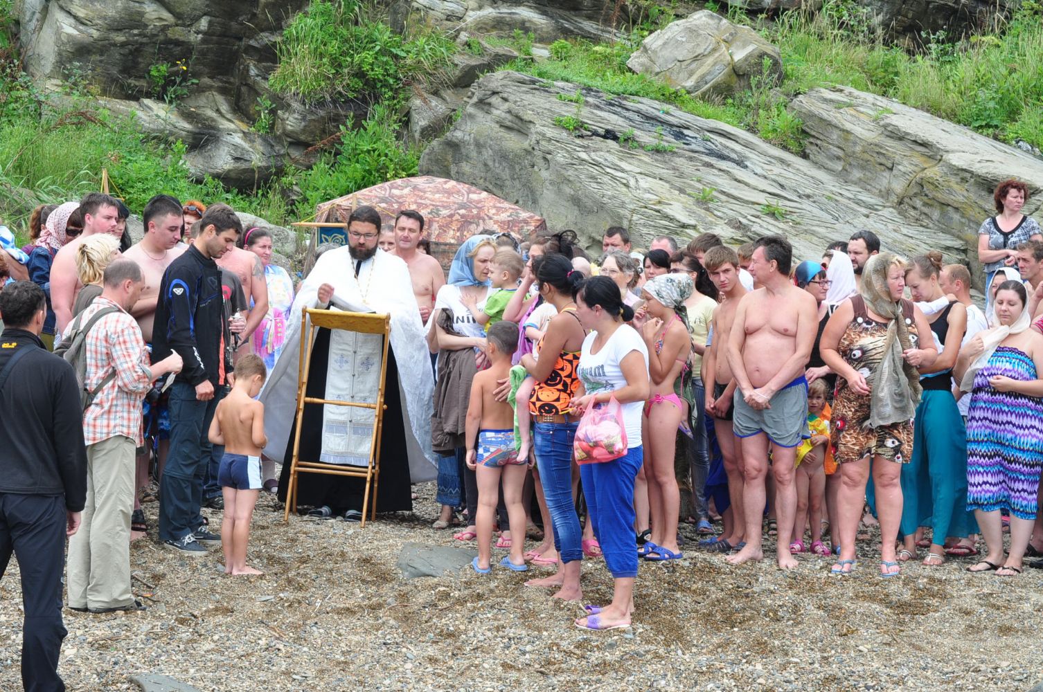 - Отрадно, что в день большого юбилея Крещения Руси на берег бухты пришли десятки жителей поселка Рыбачий; часть крещаемых приехали из Владивостока. Крещение было бесплатным, совершалось полным погружением в море. С новокрещенными христианами мы провели беседу о необходимости приступить к первому Причастию и о дальнейшем участии в таинствах. Для удобства на берегу была разбита палатка для переодевания. После совершения Крещения всем раздавался горячий чай и угощения.