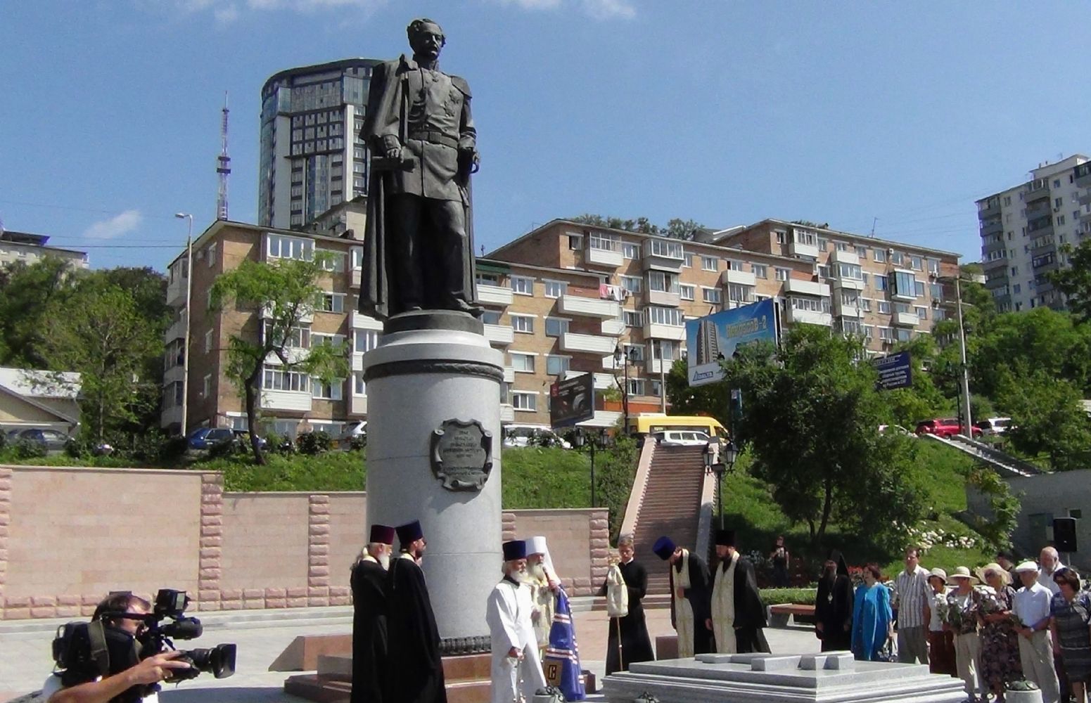 Духовенство, власти города и общественность возложили цветы к памятнику графу Муравьеву-Амурскому