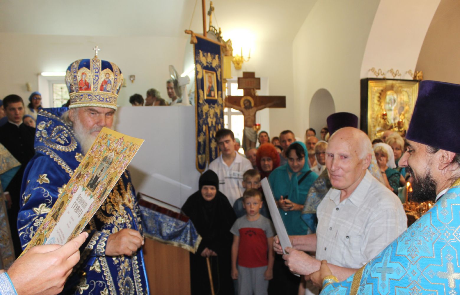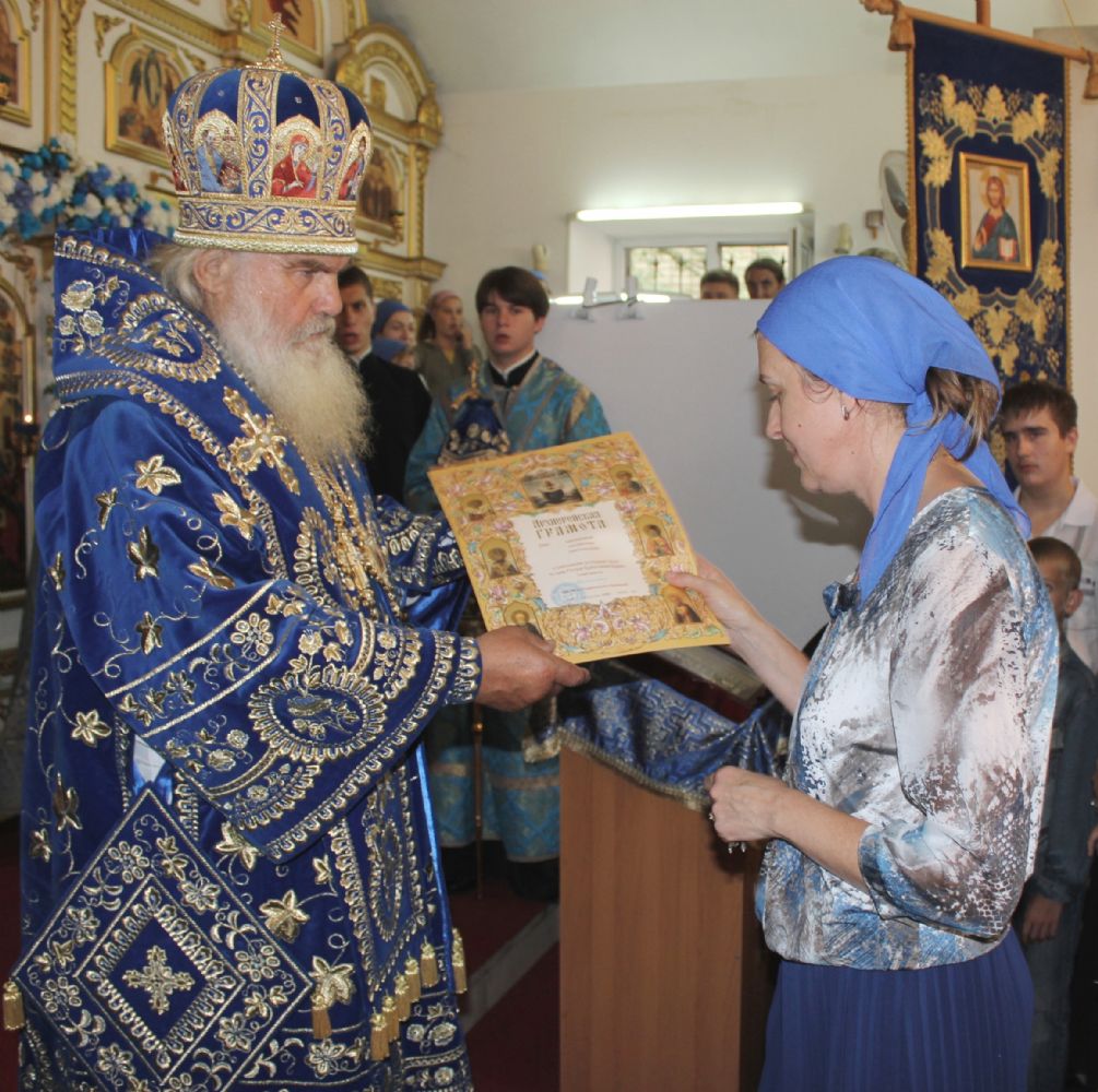 За усердное попечение о храме Архиерейские грамоты вручены: Валерию Михайловичу Мельникову, Раисе Васильевне Рара, Сергею Витальевичу Бедюх.