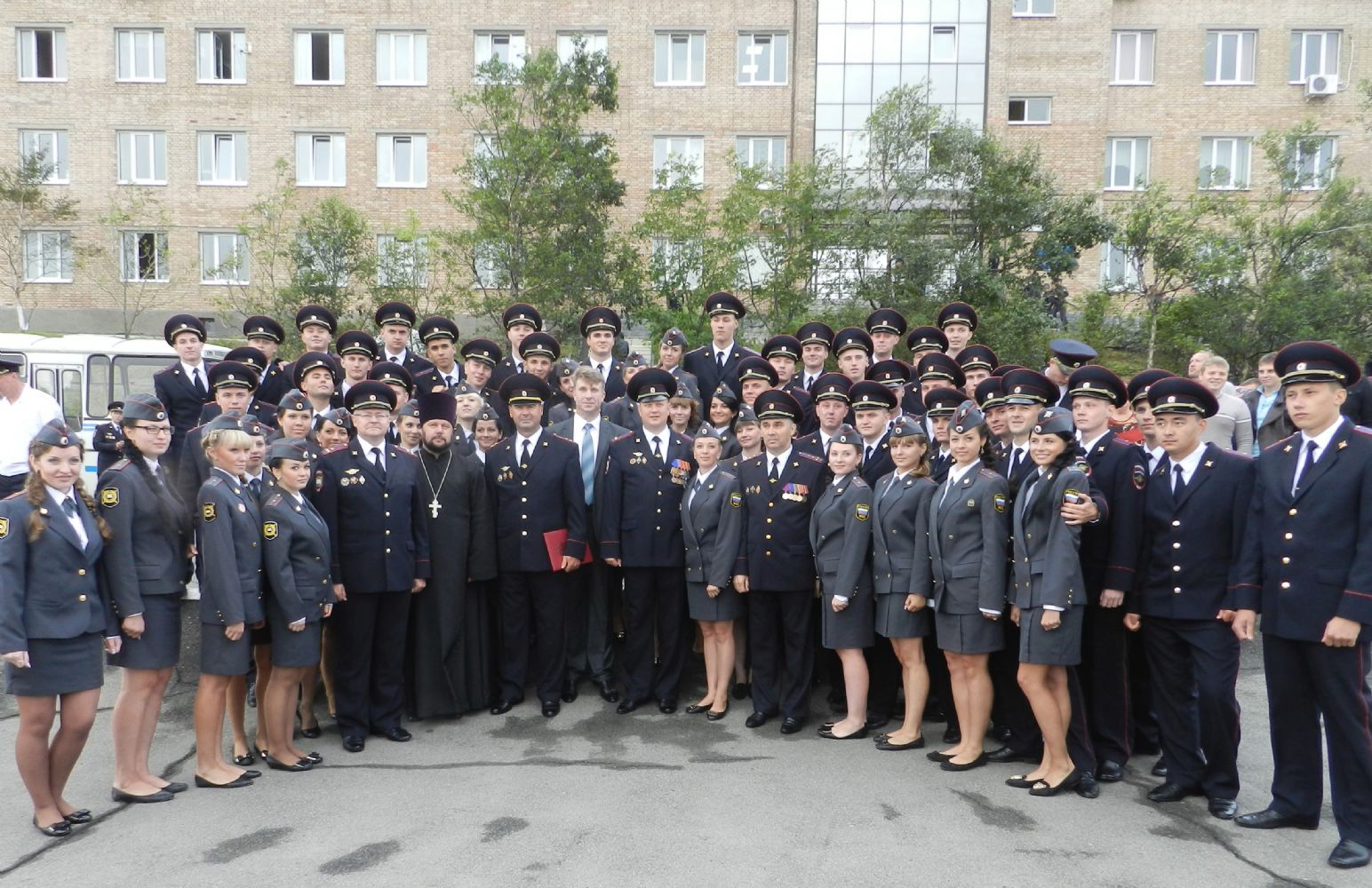 2 сентября 2013 года руководитель епархиального Отдела по взаимодействию с правоохранительными органами и МЧС иерей Димитрий Брызгалов поздравил слушателей 5 курса Владивостокского филиала Дальневосточного юридического института МВД России – с присвоением первичного специального звания младший лейтенант полиции, а курсантов первого курса – с успешным поступлением в вуз и началом учебного года.
