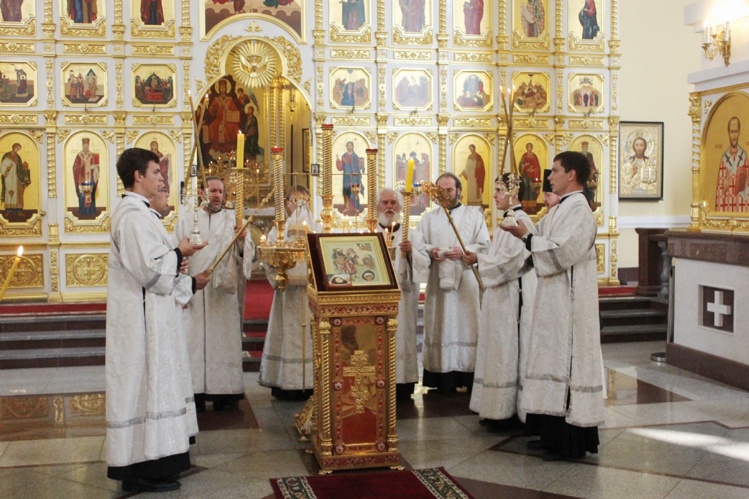 Владивосток. 11 сентября 2013 года, в день памяти Усекновения главы Иоанна Предтечи, митрополит Владивостокский и Приморский Вениамин в сослужении духовенства совершил Божественную литургию в Никольском кафедральном соборе.