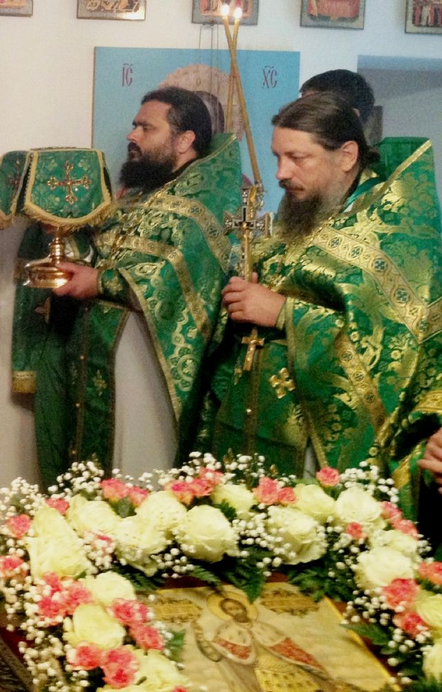 За Божественной литургией Его Высокопреосвященству сослужили: благочинный III округа епархии, настоятель храма святого благоверного князя Александра Невского села Вольно-Надеждинское о.Евгений Маляр; настоятель храма Покрова Пресвятой Богородицы поселка Угловое протоиерей Сергий Бирюк; настоятель храма святого преподобного Тихона Калужского села Алексеевка игумен Никон (Анненков); настоятель храма в честь иконы Божией Матери «Взыскание погибших» поселка Заводской иерей Владимир Остаченов; настоятель храма Успения Пресвятой Богородицы поселка Тавричанка иерей Александр Казанцев.