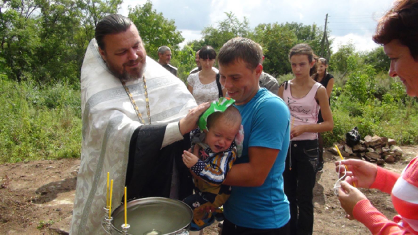 На фото последовательно слева направо: крещение в селе Благодатное 1-й и 2-й кадры, 3-5-й в селе Борисовка, 6-8-й литургия в селе Корсаковка, 9-11-й крещение в селе Кроуновка, 12-15-й в селе Прилуки, 16-18-й в станице Григорьевской, с 19-го и до конца в селе Яконовка.