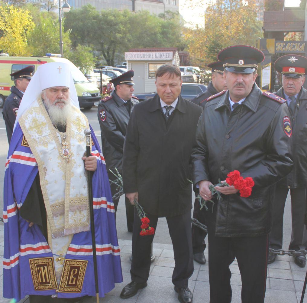 Участниками памятной церемонии также стали: благочинный I округа Владивостокской епархии о.Димитрий Федорин; руководитель епархиального отдела по взаимодействию с правоохранительными органами и МЧС иерей Димитрий Брызгалов; духовенство епархии.