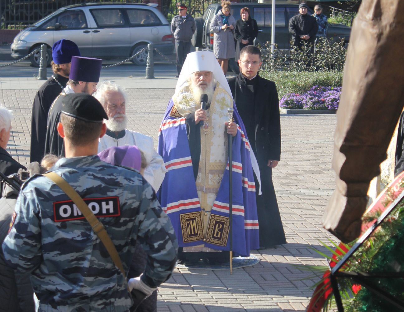 Митрополит Владивостокский и Приморский Вениамин совершил у храма святого благоверного князя Игоря Черниговского заупокойную литию. Также Его Высокопреосвященство принял участие в церемонии возложения цветов и венков к мемориалу памяти.