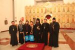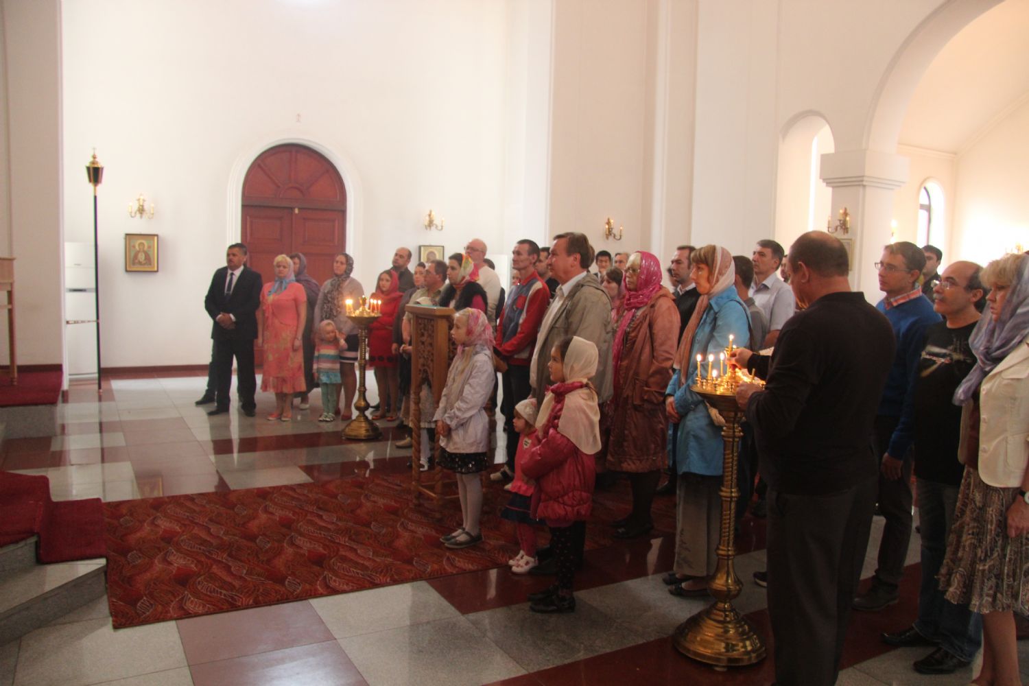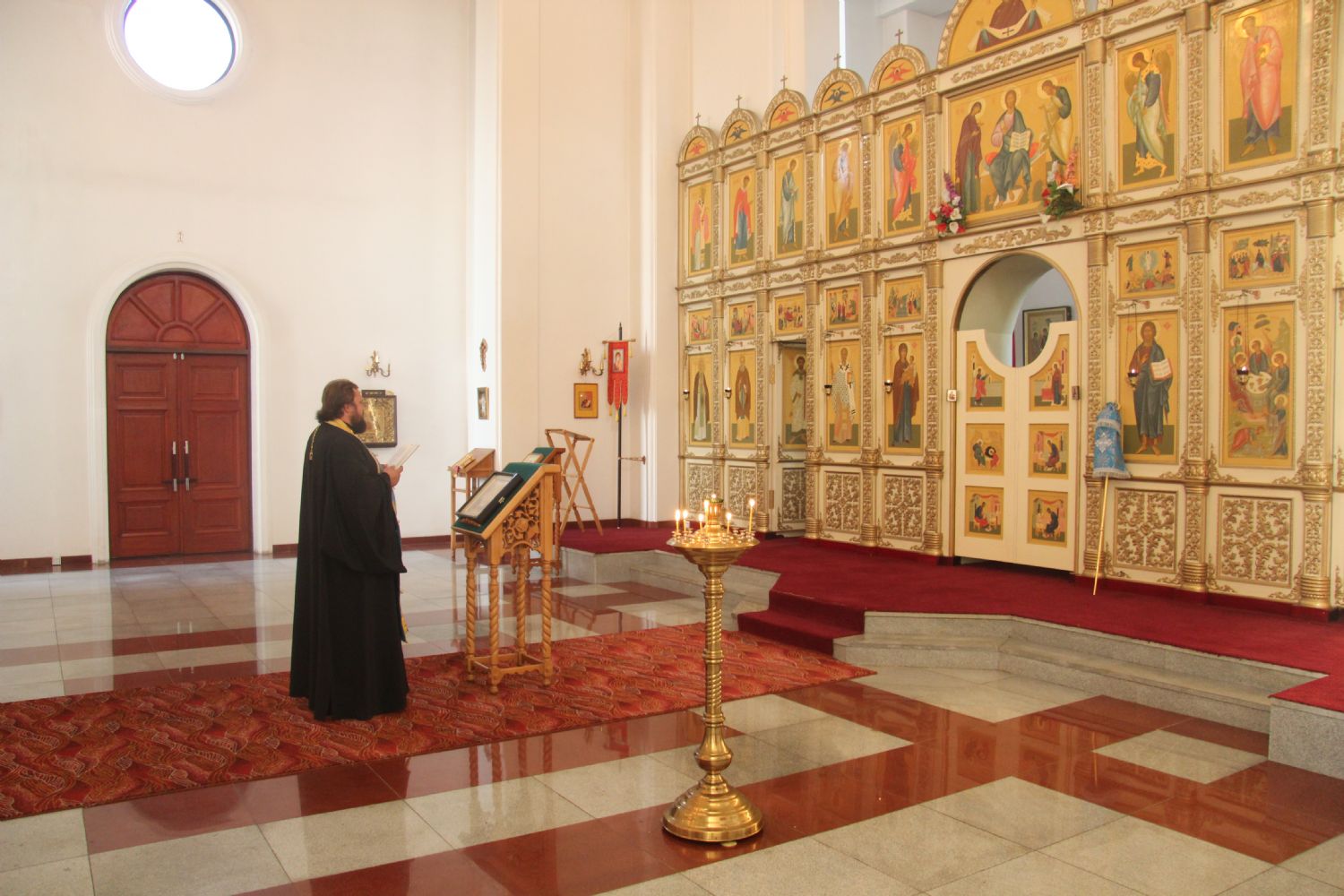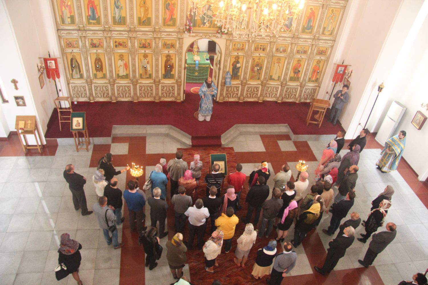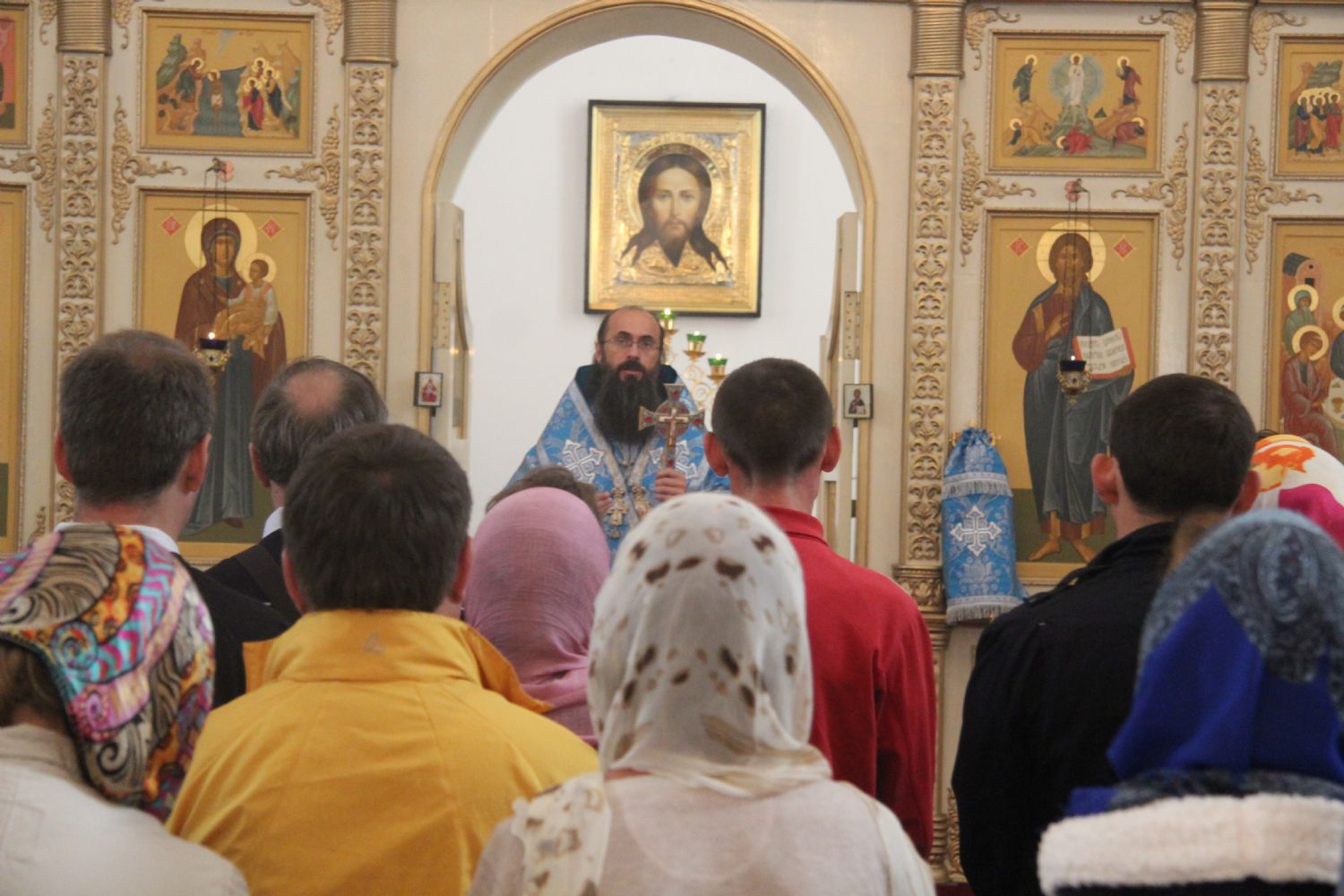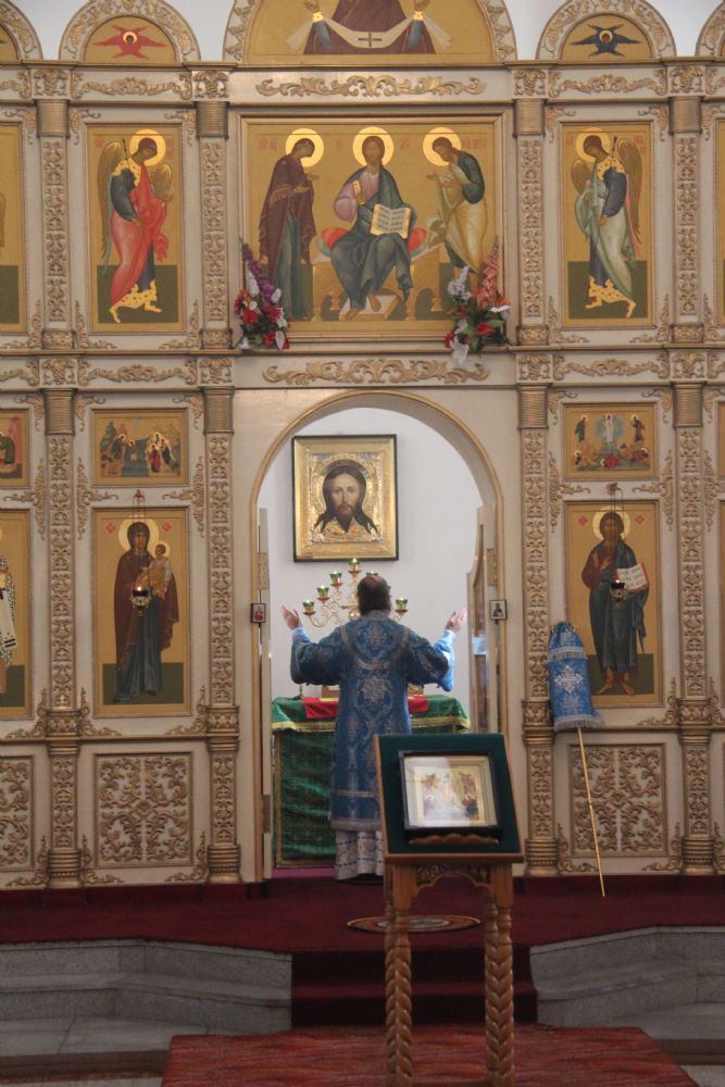Возглавил богослужение епископ Уссурийский Иннокентий, викарий Владивостокской епархии, который посещал православный приход храма в честь Святой Живоначальной Троицы.