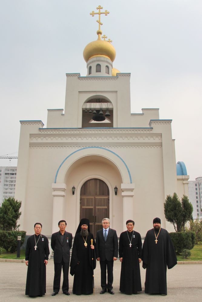 Пхеньян – Владивосток. Завершилась поездка делегации Владивостокской епархии в православный приход Русской Православной Церкви, действующий в Корейской Народной Демократической Республике. По согласованию с управлением Московской Патриархии по Зарубежными учреждениям и благословению митрополита Владивостокского и Приморского Вениамина, приезд епископа Иннокентия был приурочен к 65-летию установления дипломатических отношений между Россией и КНДР.