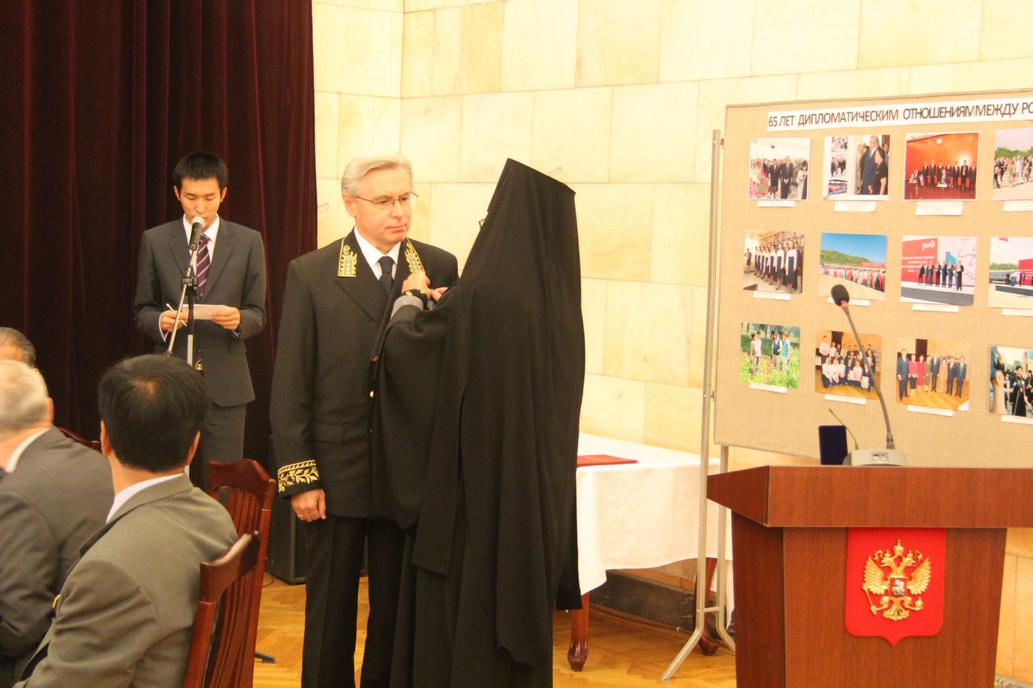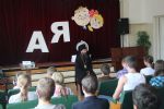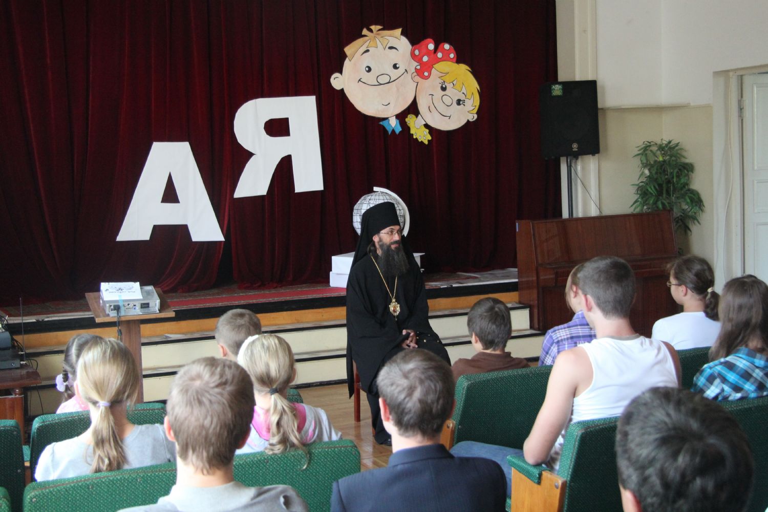 В школе при посольстве РФ в КНДР Его Преосвященство провел беседу с учащимися и учителями, посвященную празднику Покрова Пресвятой Богородицы, а также предстоящему в 2014 году большому празднованию 700-летия преподобного Сергия Радонежского.