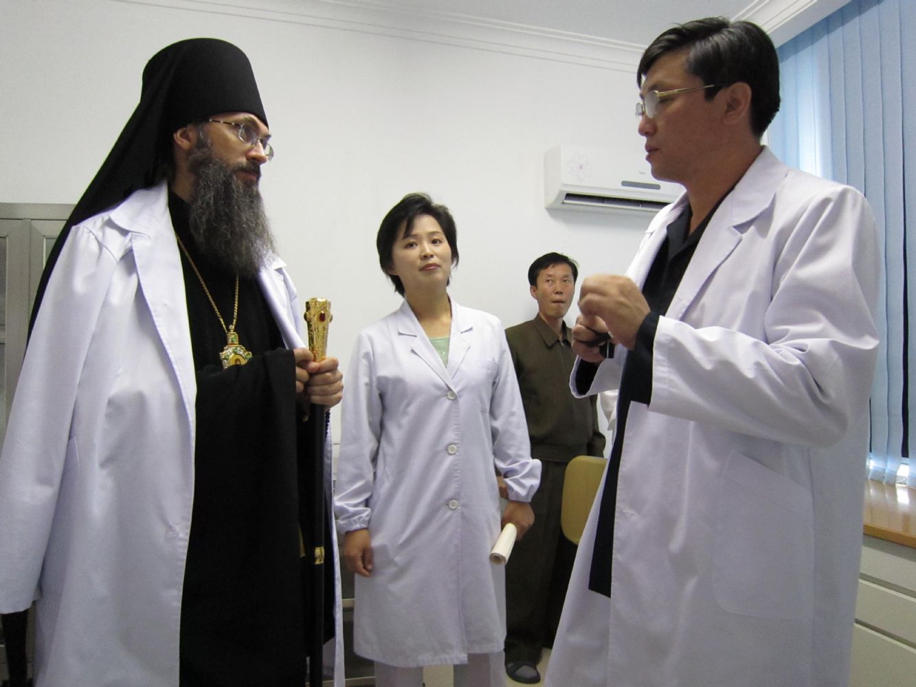 В один из дней визита православное духовенство побывало в Пхеньянском роддоме и ознакомилось с условиями оказания медицинских услуг в недавно открытом при роддоме научно-исследовательском институте, который специализируется на женском здоровье.