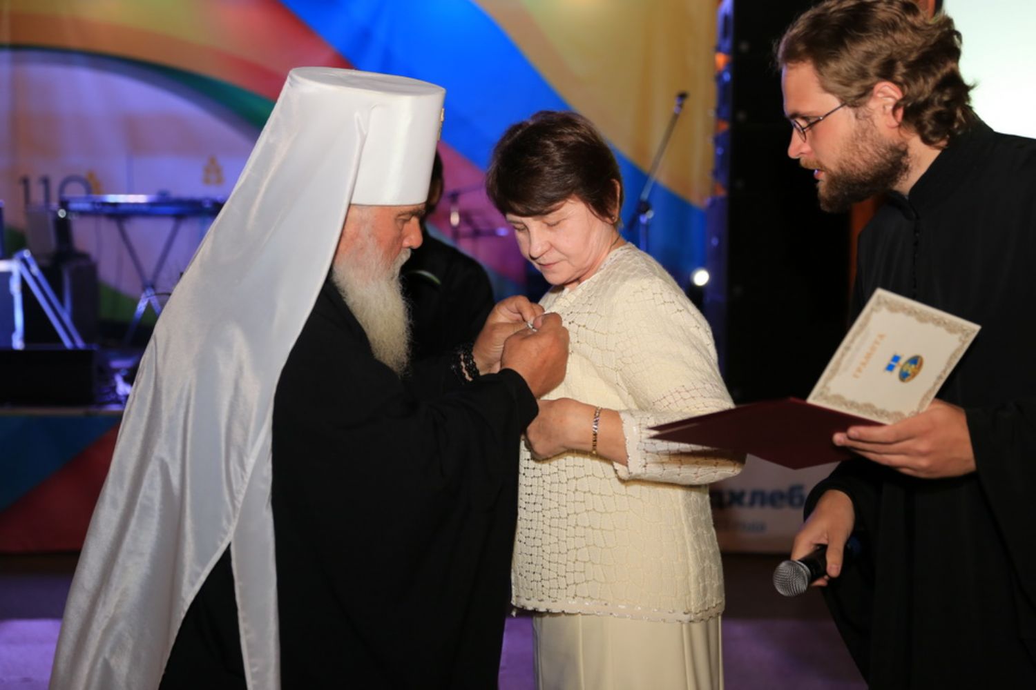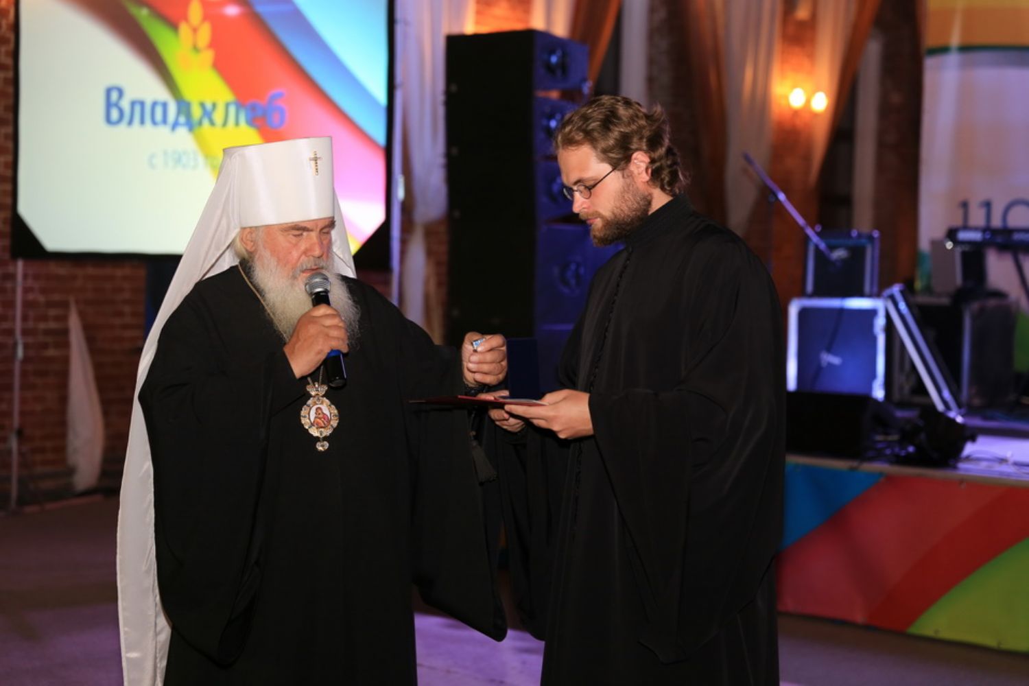 На прошедшем по случаю юбилея торжественном вечере Его Высокопреосвященство вручил Приветственный адрес генеральному директору ОАО «Владхлеб» Дмитрию Евгеньевичу Шинкаренко. А председателя совета директоров ОАО «Владхлеб» Татьяну Ивановну Лысак владыка Вениамин наградил медалью «За церковные заслуги перед Владивостокской и Приморской епархией» I степени - во внимание ко многолетней благотворительной деятельности.