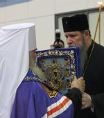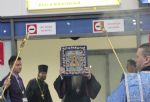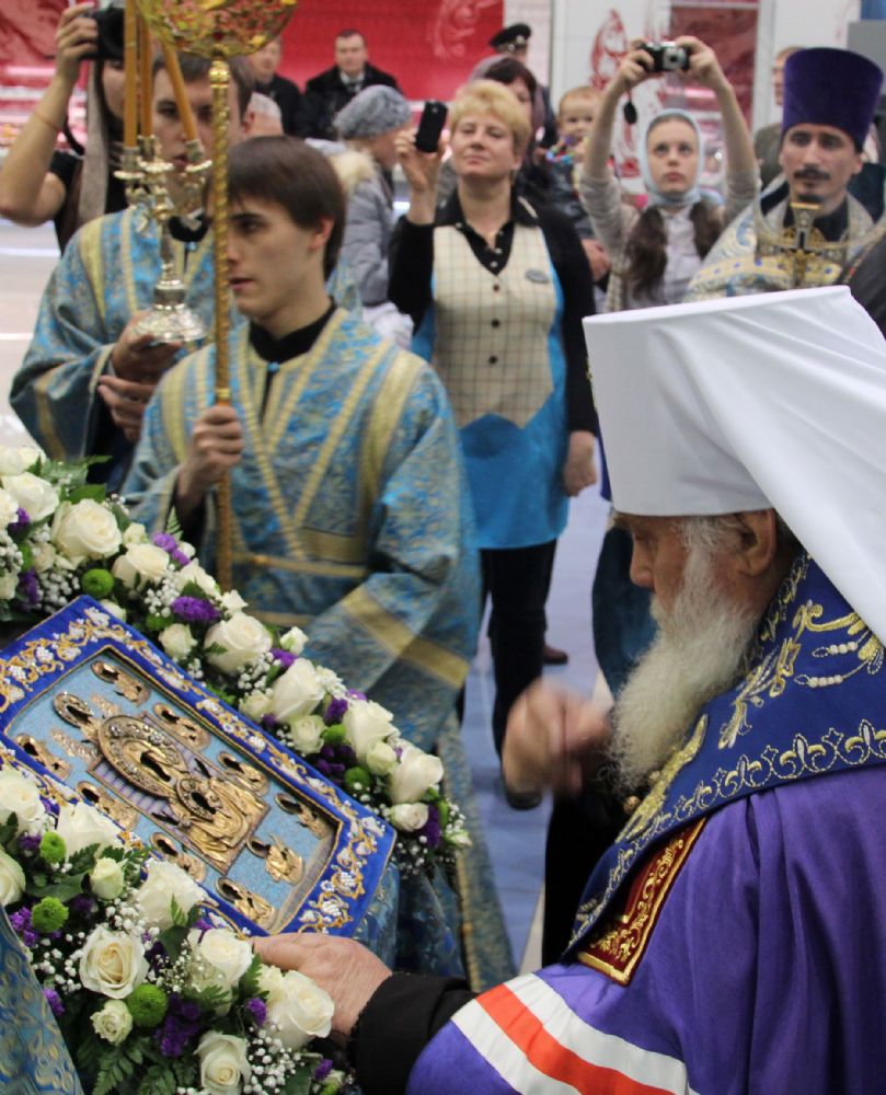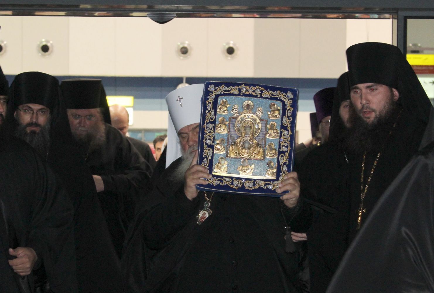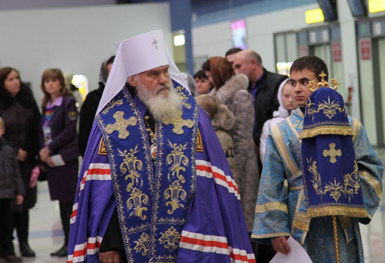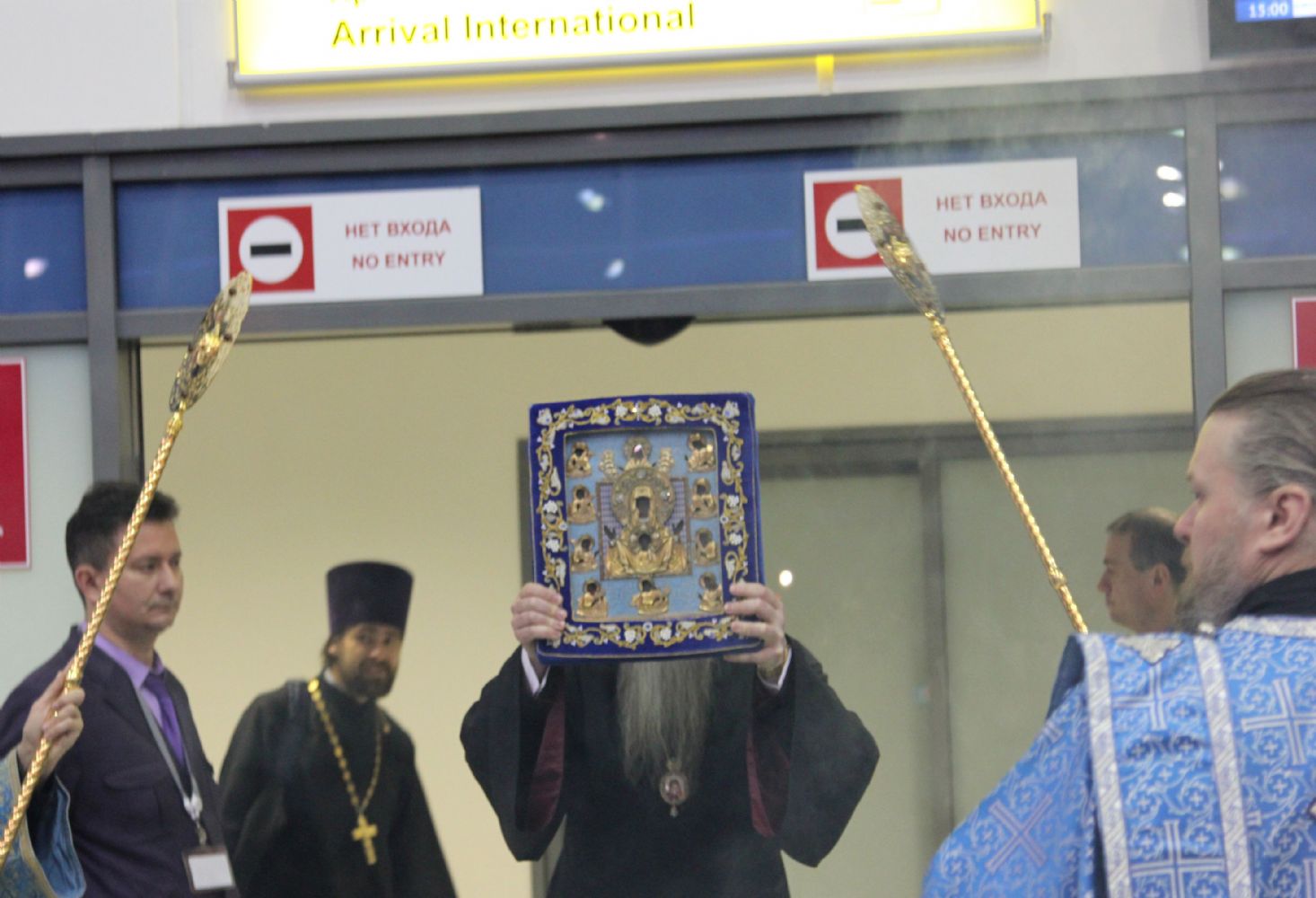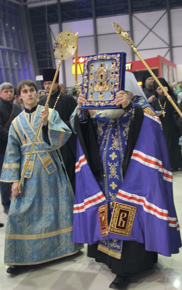 Молебен перед Курской-Коренной иконой Божией Матери «Знамение» в здании аэровокзала возглавил митрополит Владивостокский и Приморский Вениамин в сослужении архиепископа Сан-Францисского и Западно-Американского Кирилла, епископа Уссурийского Иннокентия, духовенства Приморской митрополии и Русской Зарубежной Церкви.