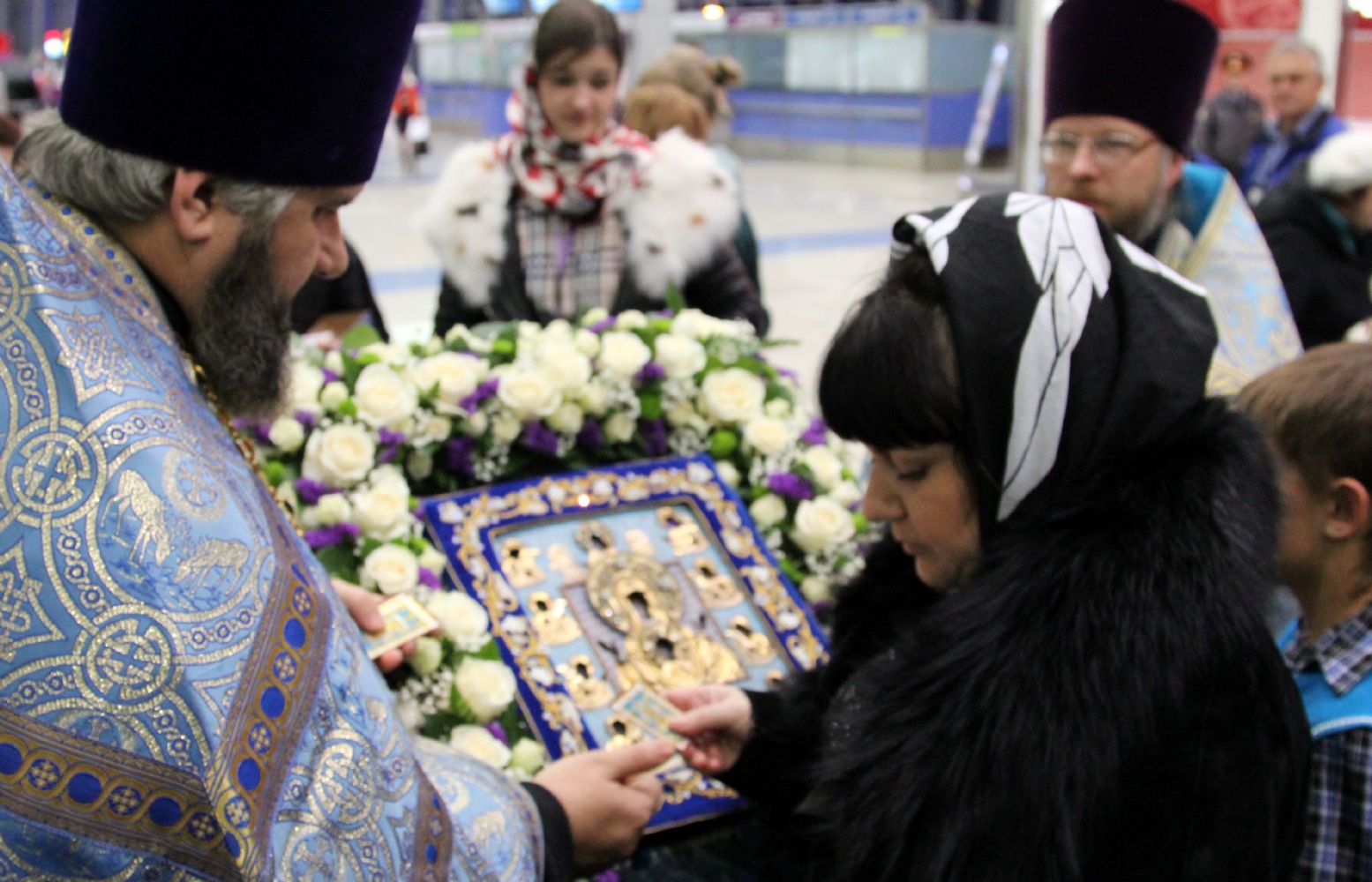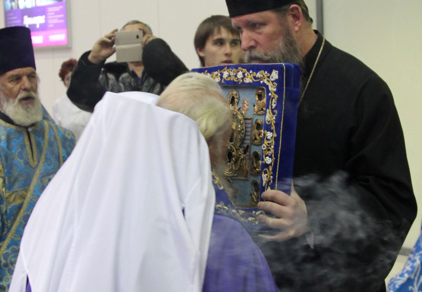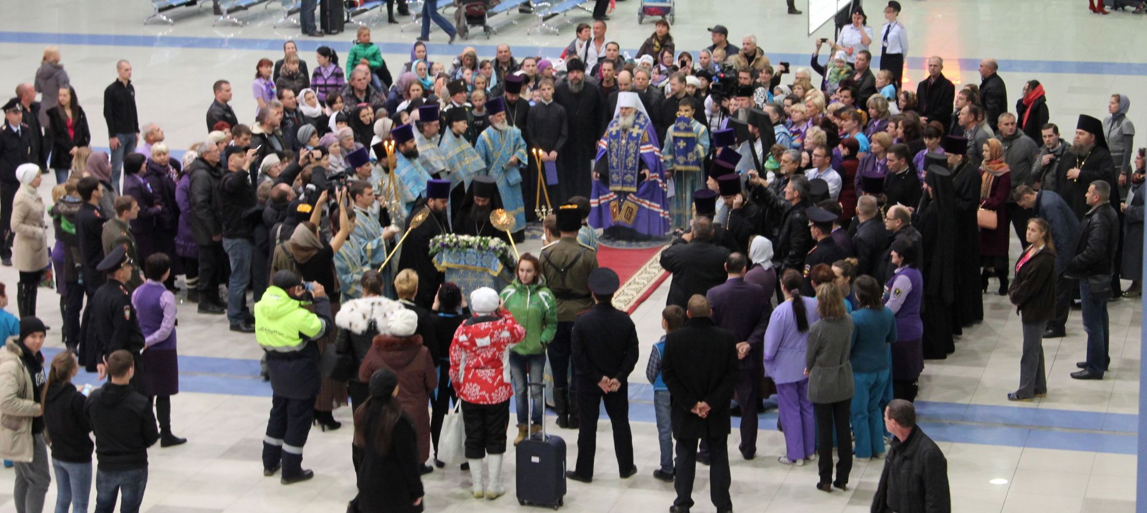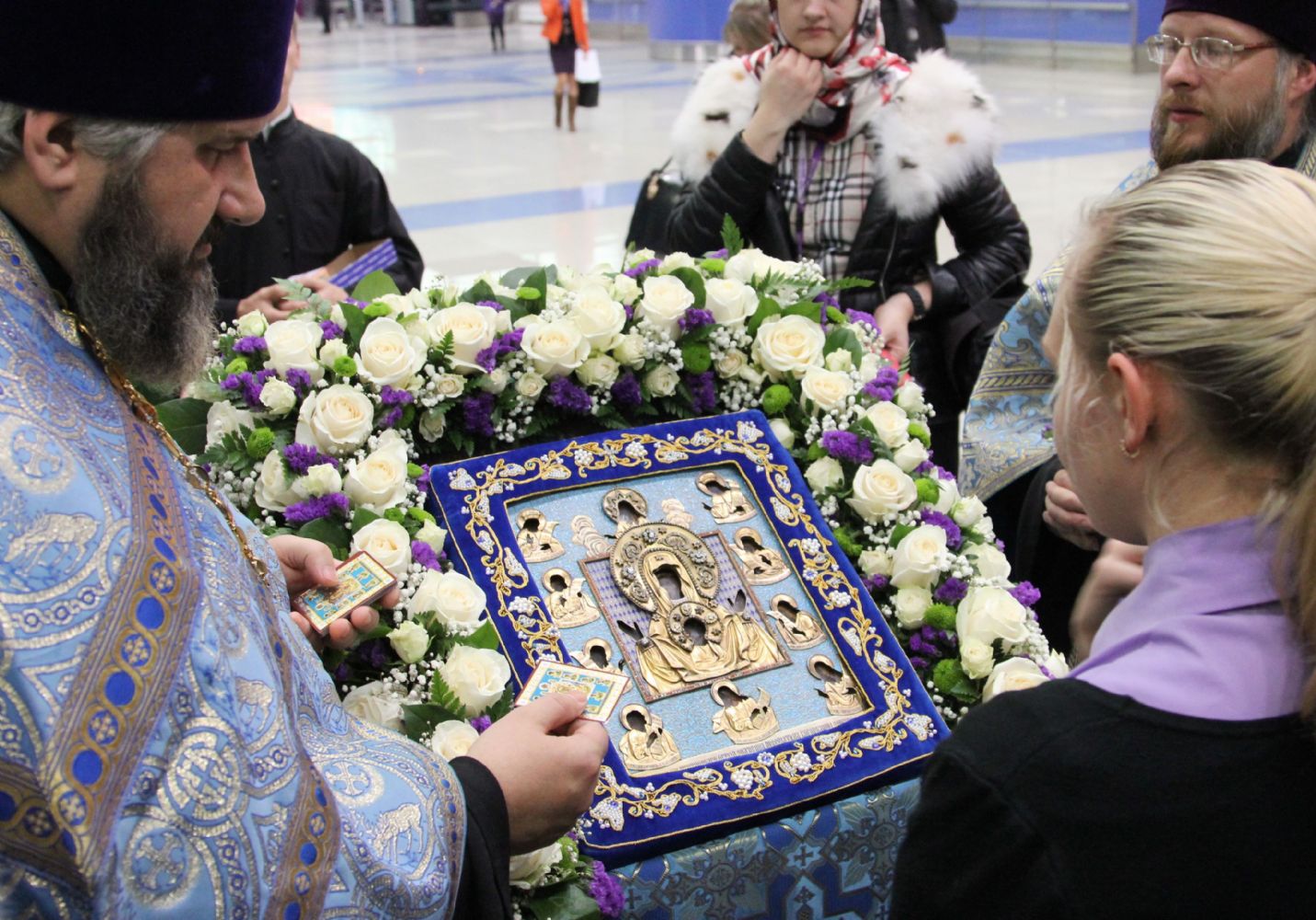 Встреча проходила в центральном зале прилета, и принять в ней участие смогли, по согласованию с администрацией аэропорта, все желающие – в том числе, встречающие и пассажиры, проходящие регистрацию и ожидающие вылета. Более трёхсот пятидесяти человек в этот вечер приложились к святому образу, получили благословение перед вылетом, приняли участие в праздничном богослужении.