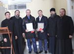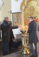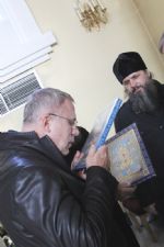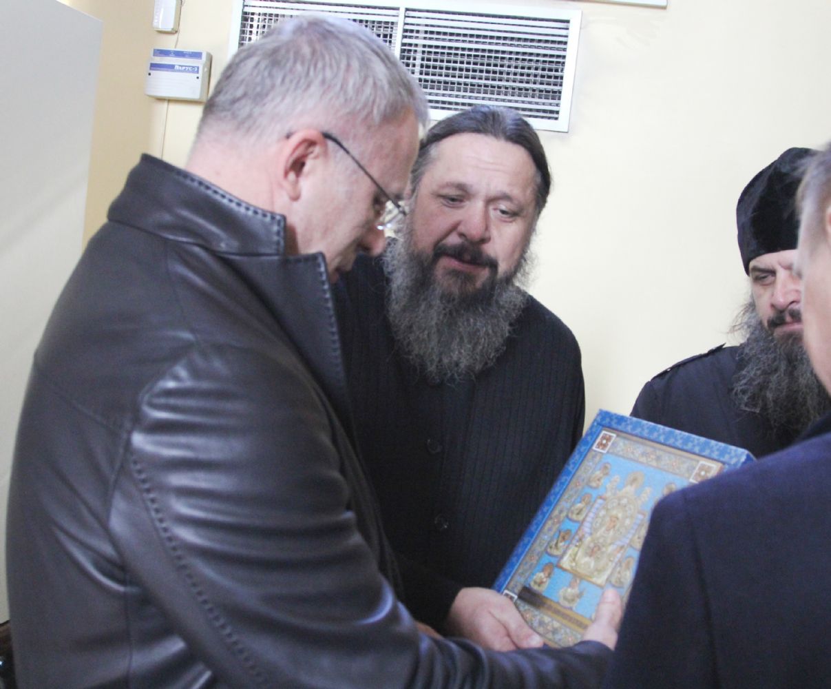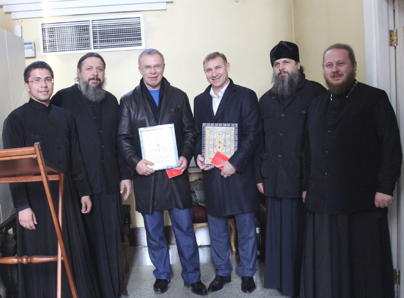 В соборе Вячеслав Фетисов и Александр Филиппенко поклонились древнему чудотворному образу и вознесли молитвы ко Господу. Затем здесь же в храме состоялась встреча с секретарем Владивостокской епархии протоиереем Игорем Талько и ключарем собора протоиереем Александром Талько.