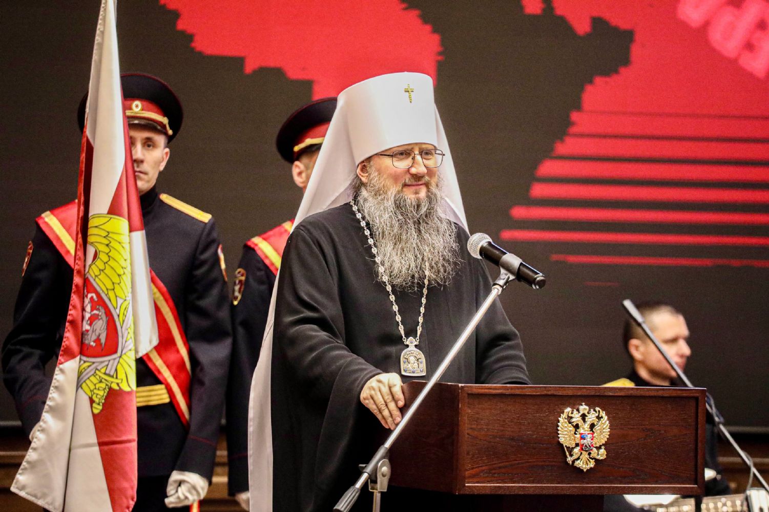 - В вашей службе необходимо и мужество, и мудрость, сплочённость коллектива. Но самое главное — особый характер военнослужащего, который готов встать на защиту граждан и, не страшась угроз, даже пожертвовать своей жизнью. Это особые люди, крепкие духом. Церковь всегда молится за всех наших защитников.