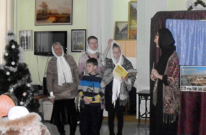 - Во время спектакля ребята смогли больше узнать об истории Рождества Христова, посмотрели презентацию о священном городе Иерусалиме; закончился спектакль исполнением песни из репертуара Жанны Бичевской «Мой Иерусалим». Спектакль получился ярким, красочным и познавательным. Продолжением праздника стал концерт, подготовленный молодежью храма. Ребята читали стихи, звучали музыкальные пьесы в исполнении скрипки, кларнета и саксофона. Зрители были восхищены песней «Рождественская елочка», исполненной вокальной группой храма. Праздник продолжился чаепитием и вручением подарков.