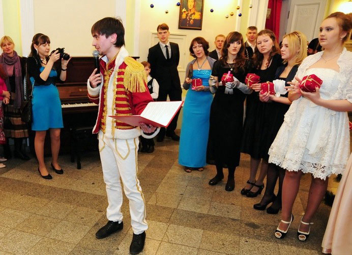 В начале XIX века на балах принято было выступление певцов и музыкантов, не обошлось и без конкурсов. В третьей части бала гости смогли увидеть битву умов между курсантами Морского госуниверситета и сборной командой гостей.