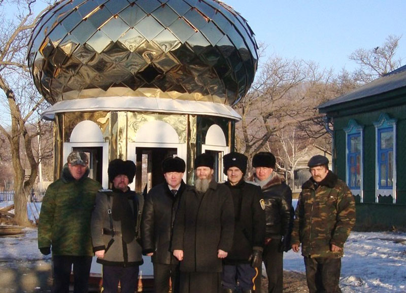 - Каркасы куполов монтировали тут же, прямо рядом с возводящимся храмом, крепя на каркасы «чешуйки», - рассказал благочинный Центрального округа Находкинской епархии, настоятель Свято-Иверского храма протоиерей Александр Жолобов. - Металл, сверкающий на главках – сплав нитрид титана, он долговечен, прочен, не поддается коррозии и значительно дешевле сусального золота. Спасибо всем благотворителям, представителям казачества, селянам, кто вносит посильную помощь в благое дело возведения нашего храма.