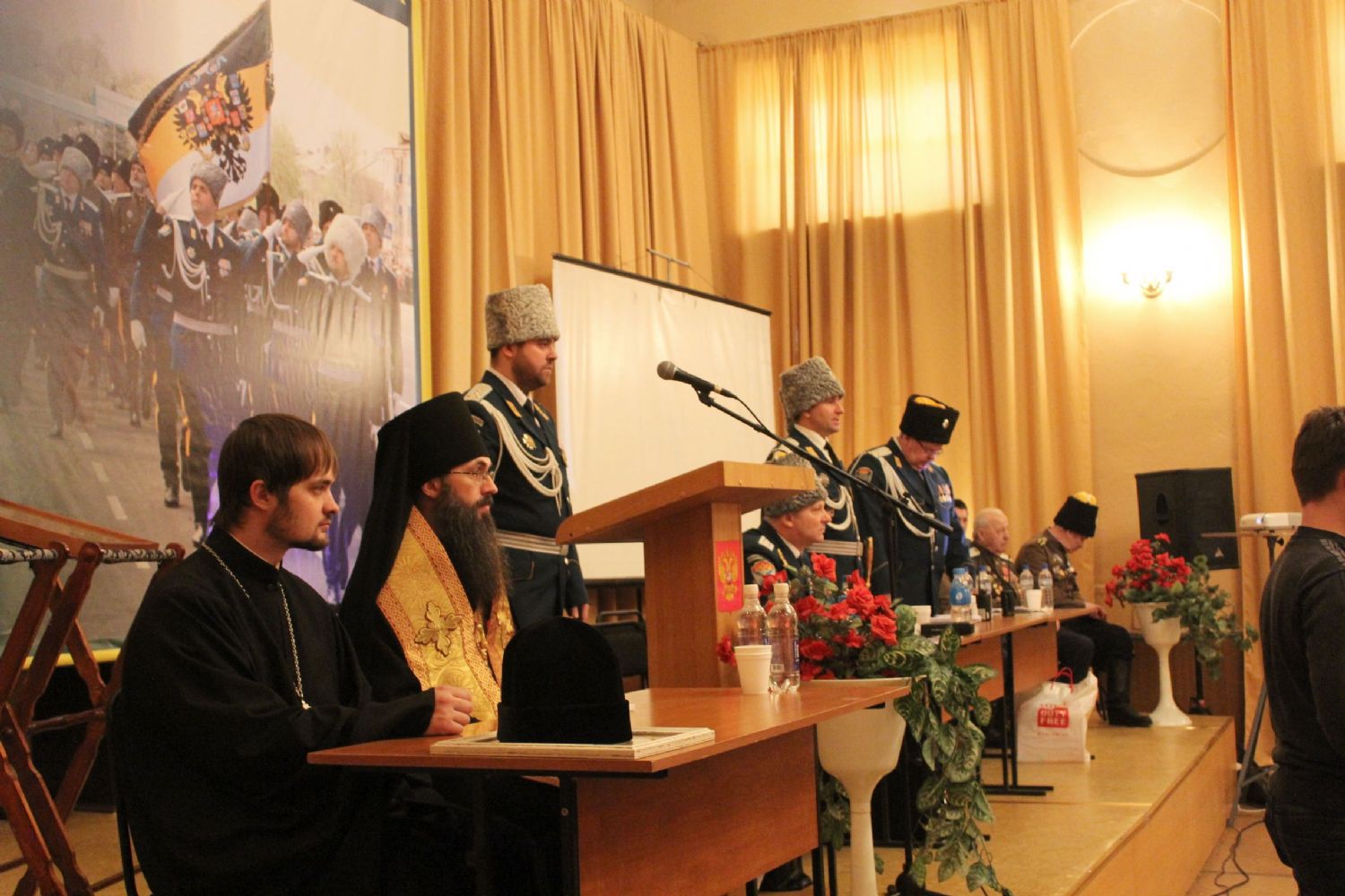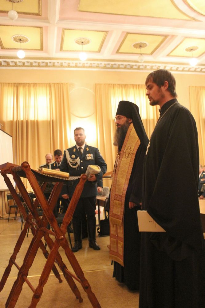 Епископ Иннокентий благословил открытие Большого казачьего круга специальным молитвенным чином, предусмотренным по такому случаю. В зале находились на спецально уготованном месте Евангелие, крест и икона.