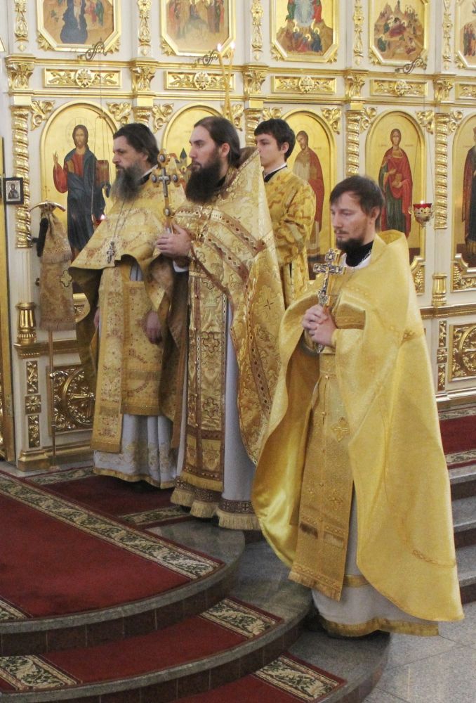 Также за Литургией молились: ключарь Никольского кафедрального собора протоиерей Виктор Жильцов и благочинный I округа епархии иерей Димитрий Федорин.