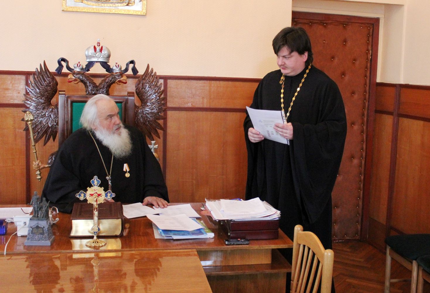 После вручения Указов, митрополит Вениамин обсудил с каждым из благочинных первоочередные задачи по развитию церковной жизни в новообразованных округах, особенно уделив внимание необходимости создавать новые приходы и сооружать храмы.