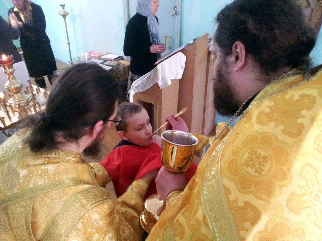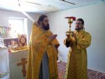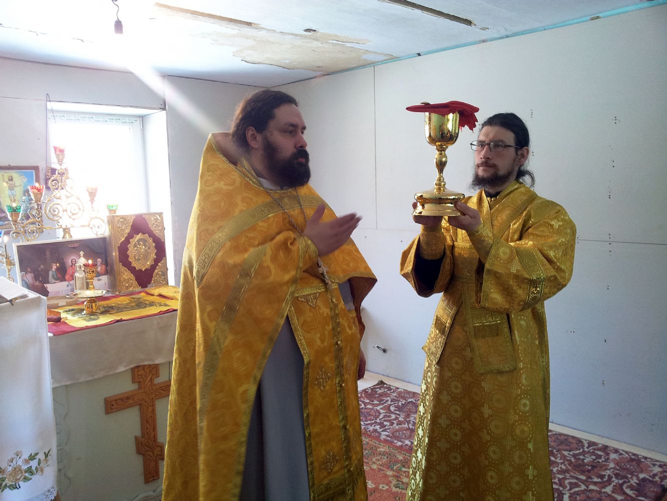 В молитвенной комнате пос. Краскино Божественную литургию совершил иерей Борис Власенко. Иеродиакон Ермоген и студент Даниил Есаков сослужили за Литургией.