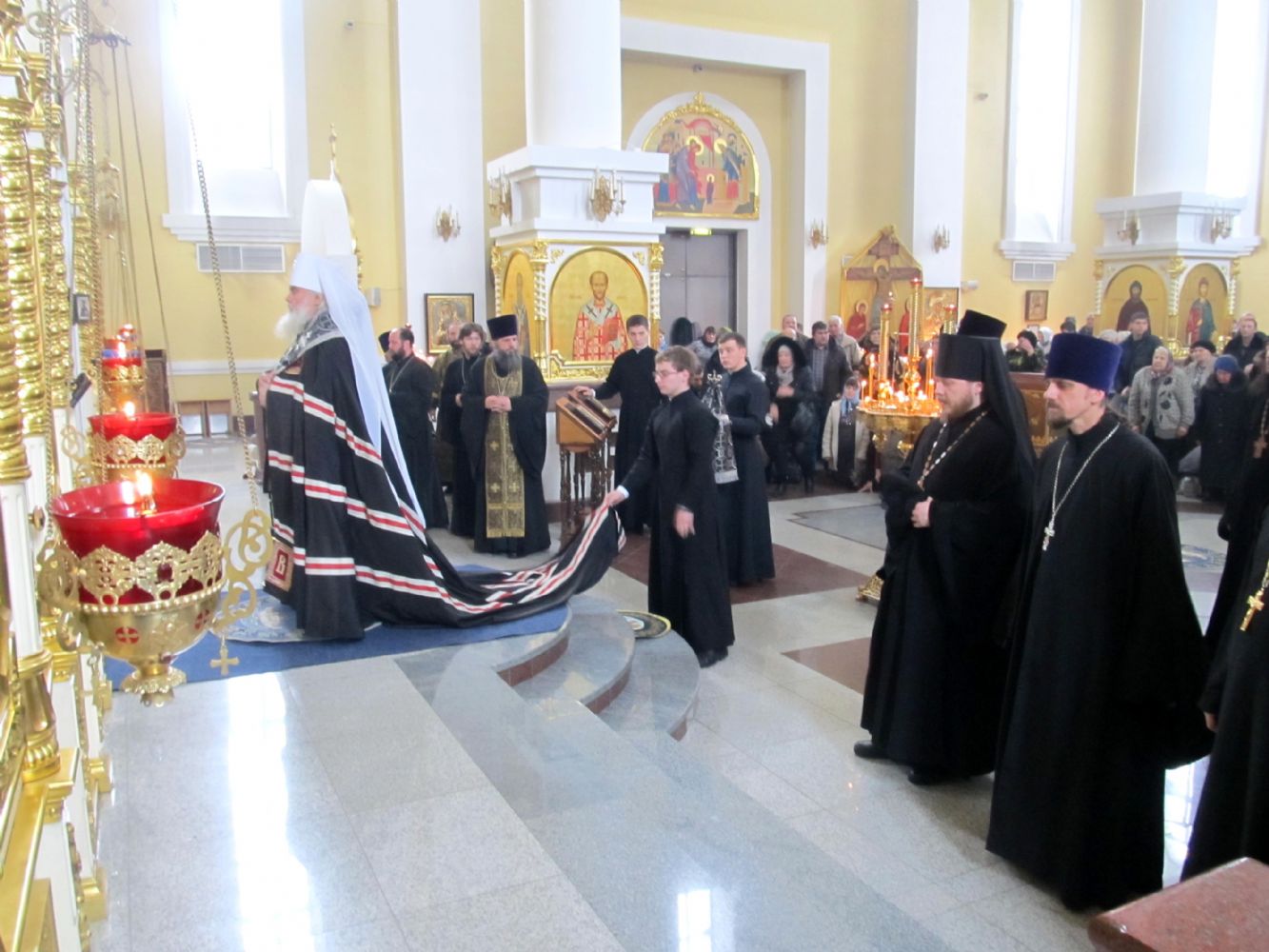 В Покровском соборе десятки священнослужителей из разных приходов епархии помогали Высокопреосвященному архипастырю совершать древний чин прощения, который традиционно используется именно в русском Православном богослужении. Расположившись с крестами вдоль солеи и колонн, батюшки благословляли верующих на Великий пост. Песнопения Великого поста исполнил Архиерейский хор под руководством Людмилы Ивановны Макаренко.