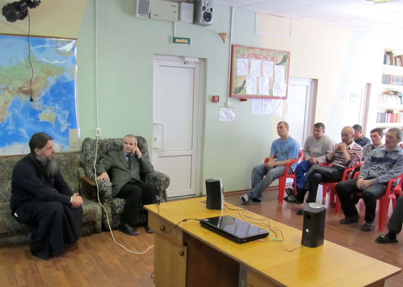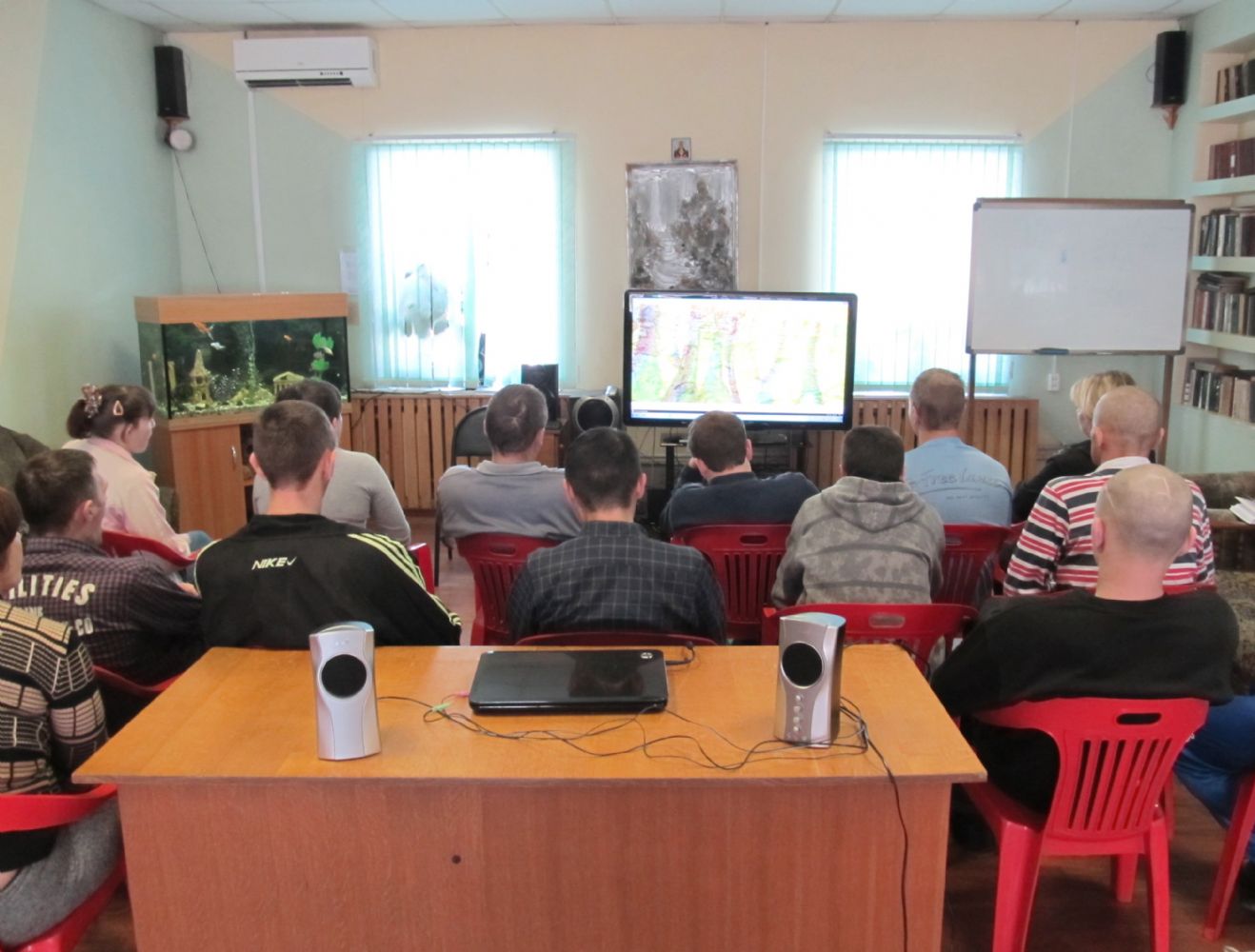 Затем в актовом зале состоялась миссионерская беседа с воспитанниками центра; был продемонстрирован фильм «Технология спаивания», повествующий о насильственной алкоголизации населения в стране.