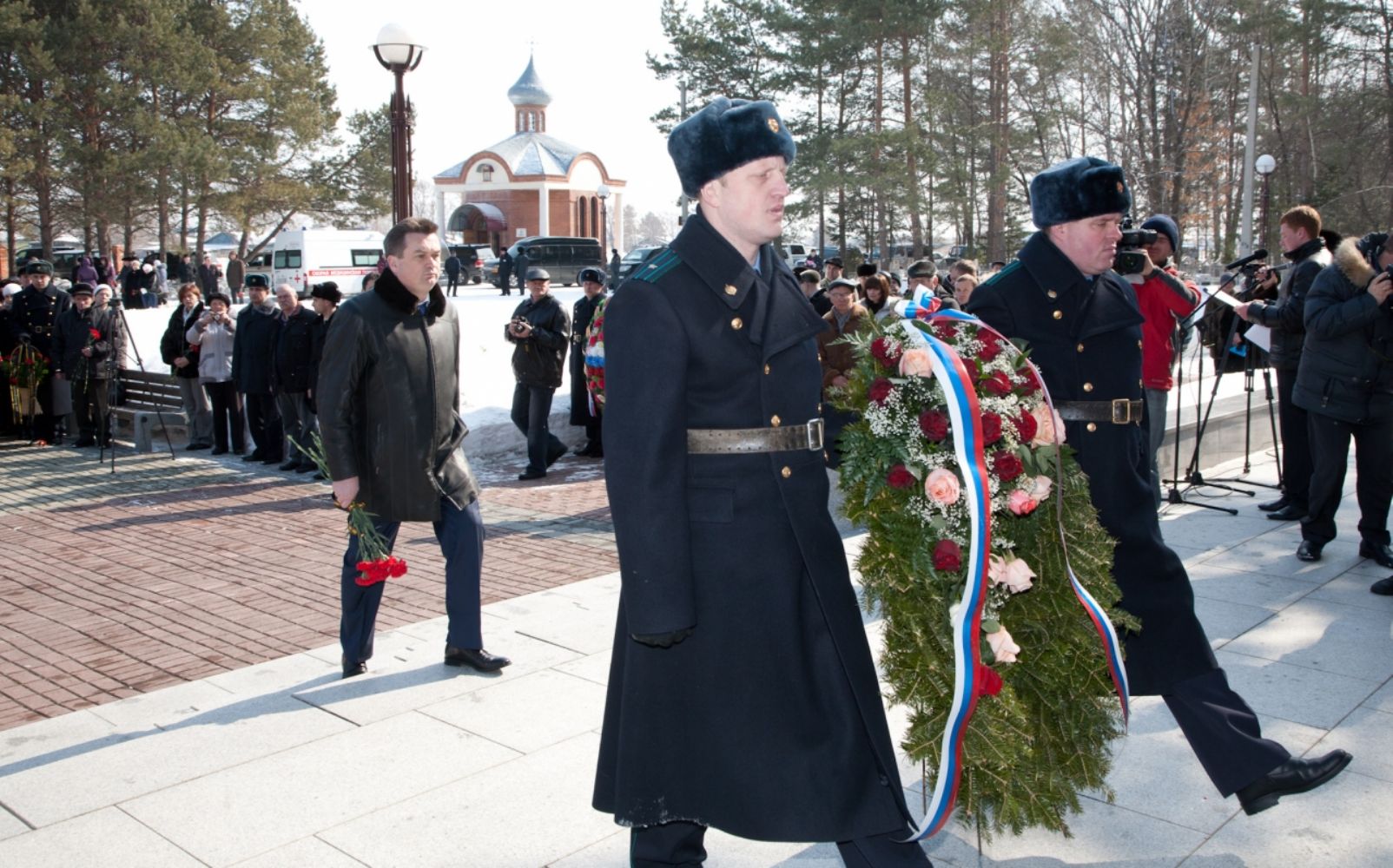 На заставе в часовне в честь святого великомученика Георгия Победоносца были зажжены восковые свечи, у мемориальной плиты возложены гирлянды и живые цветы. Протоиерей Сергий обратился к участникам памятной церемонии с пастырским словом утешения и напутствия.