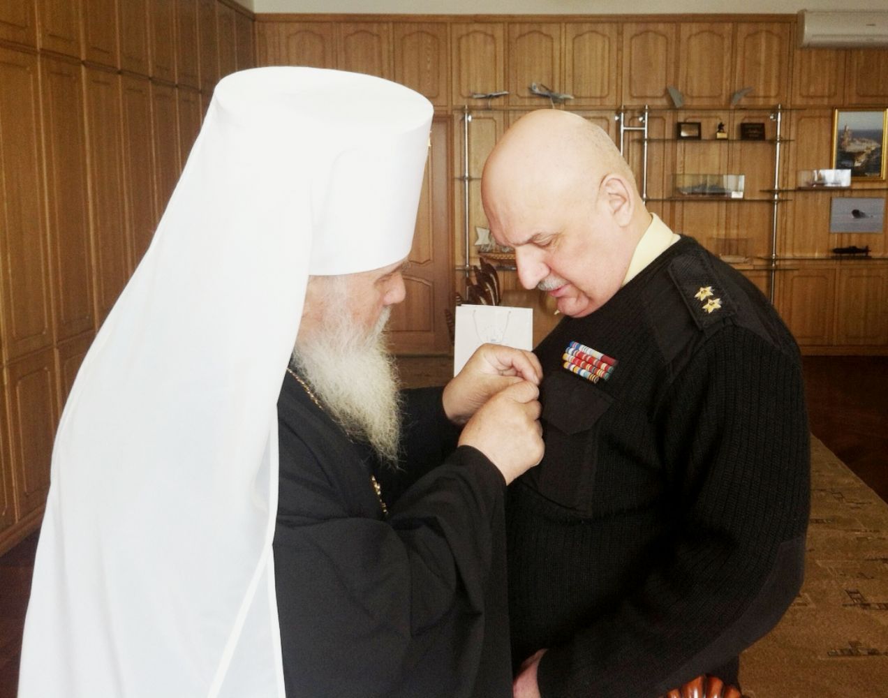 Митрополит Владивостокский и Приморский Вениамин наградил командующего ТОФ вице-адмирала С.И. Авакянца медалью «За церковные заслуги перед Владивостокской епархией».