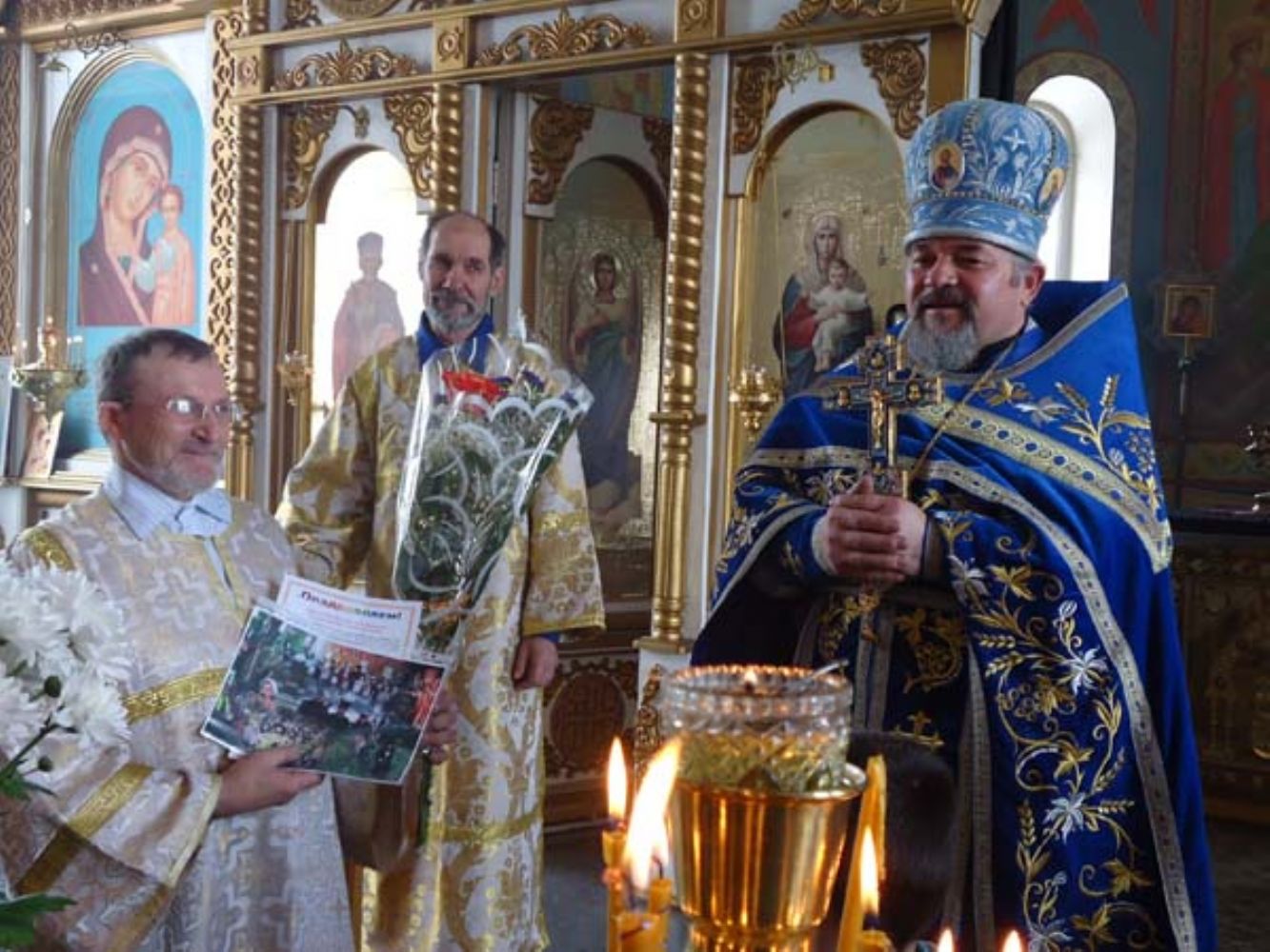 Отцу Владимиру, благочинному и настоятелю Вознесенского храма, от духовенства и прихожан были преподнесены цветы, спето «Многая лета».