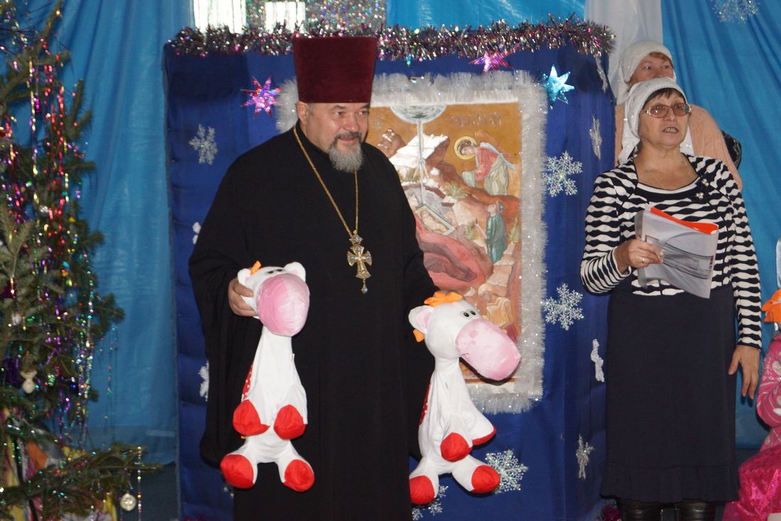 Спасск-Дальний. На праздник Рождества Христова в храме Вознесения Господня села Спасское пригласили детей-инвалидов из ООИ им. С. Лазо ГО Спасск-Дальний, детей из Воскресной школы, жителей села и для всех приготовили подарки.