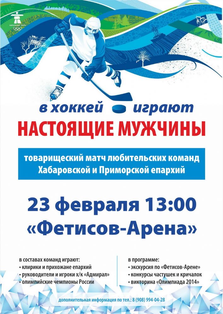Владивосток. "В Хоккей играют настоящие мужчины" - под таким названием 23 февраля 2014 года в «Фетисов-Арене» состоится товарищеский матч любительских команд Приморской и Хабаровской епархий.