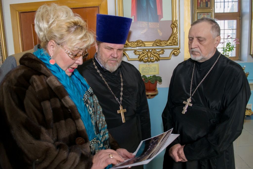 Татьяна Владимировна рассказала духовенству храма о прошедших недавно в Совете Федерации «Рождественских встречах» парламентариев со Святейшим Патриархом Кириллом и архипастырями Русской Церкви – в их числе и с Главой Приморской митрополии митрополитом Владивостокским и Приморским Вениамином. В память об этом событии Т.Заболотная подарила Лучегорскому приходу фотографию с архиереями Русской Православной Церкви.