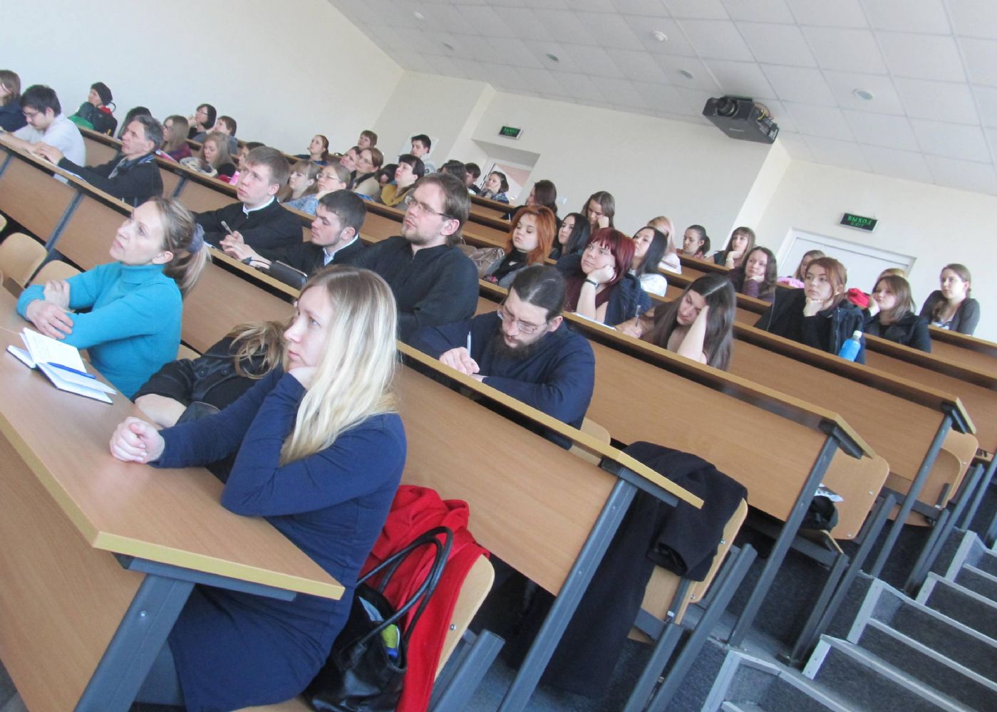 На открытую лекцию в большую аудиторию F-корпуса ДВФУ на о-ве Русский собрались студенты и преподаватели кафедр теологии и религиоведения, а также русского языка и литературы.