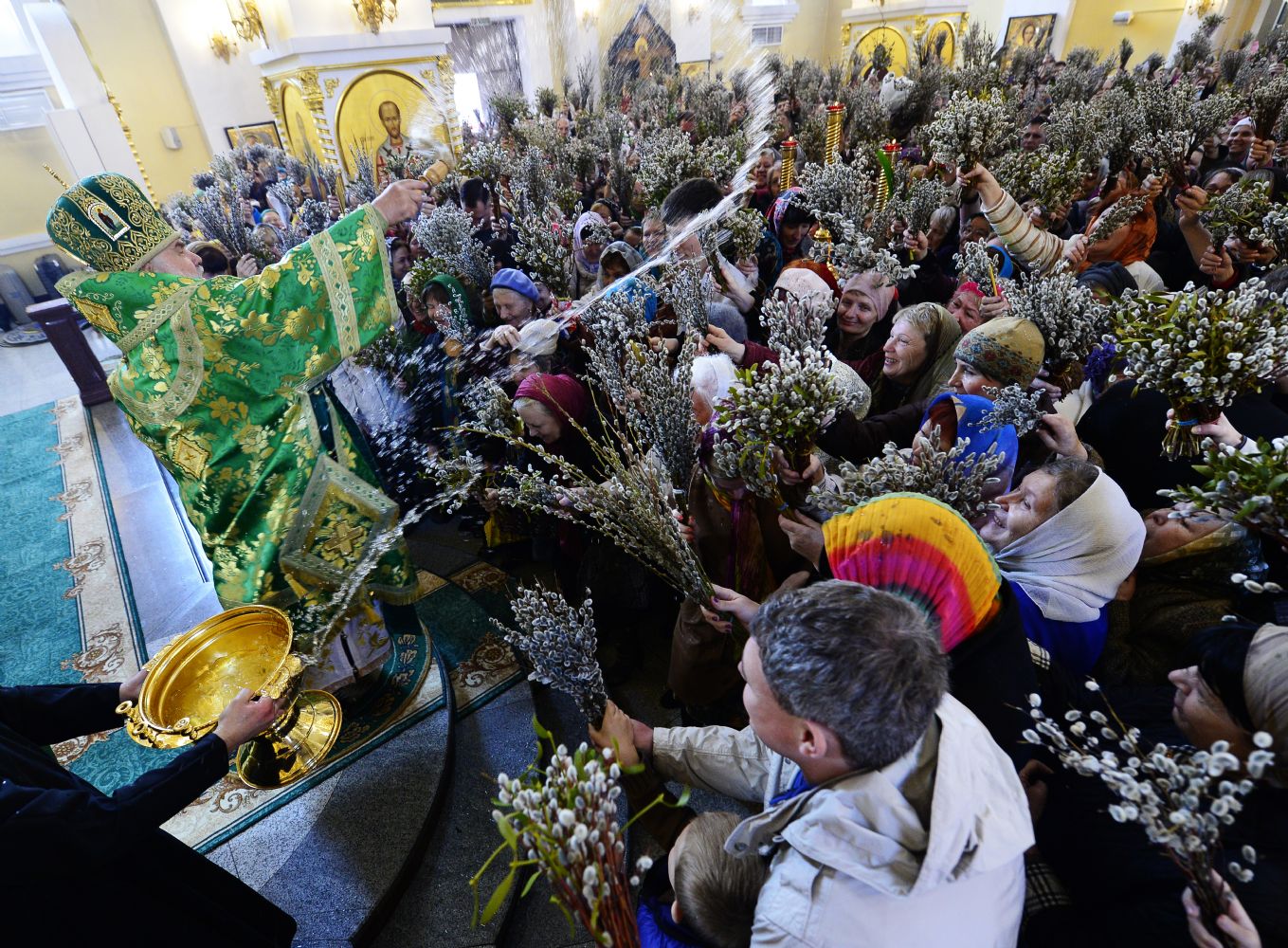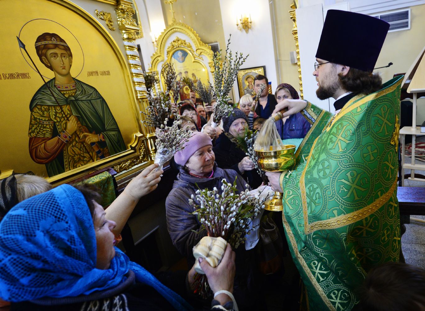 По окончании служения Литургии святителя Иоанна Златоуста владыка Вениамин окропил святой водой символ праздника – веточки вербы, с которыми в храм пришли около пятисот прихожан. Также Высокопреосвященнейший владыка совершал традиционное освящение вербы накануне – за всенощным бдением.