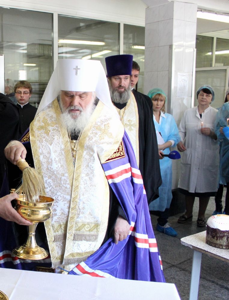 Владивосток. Перед Светлым Христовым Воскресением в храмах Владивостокской епархии совершается освящение куличей. Его Высокопреосвященство владыка Вениамин посетил православное предприятие ОАО «Владхлеб», где освятил куличи и сырьевую продукцию для их изготовления.