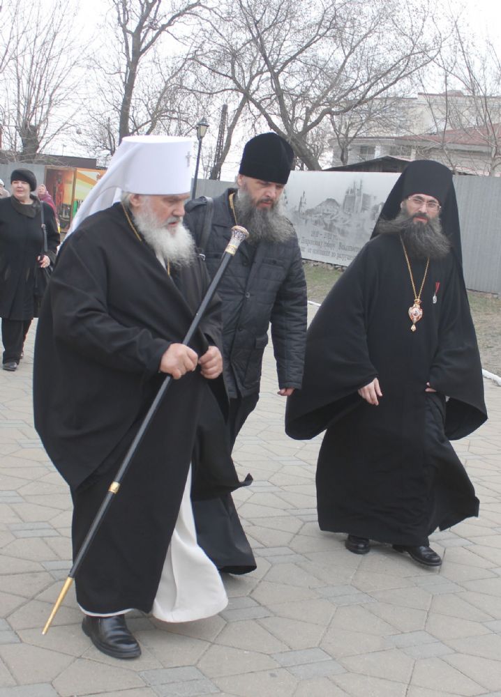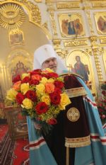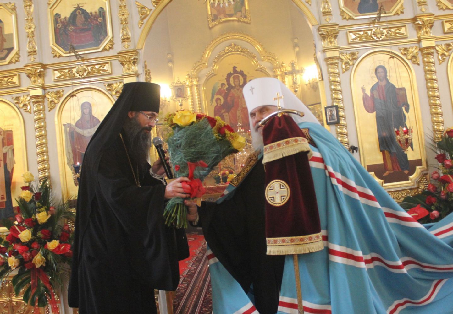 От лица духовенства и прихожан в дар правящему архиерею Высокопреосвященнейшему Вениамину пасхальный букет преподнес викарный архиерей епархии епископ Иннокентий. В ответ митрополит Вениамин тепло поблагодарил Преосвященного владыку, духовенство и паству, а затем обратился к присутствующим с проповедью о духовном значении празднования Воскресения Христова.