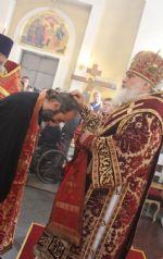 Во время богослужения владыка Вениамин удостоил богослужебной награды – права ношения набедренника – клирика Никольского кафедрального собора иерея Николая Манукяна.