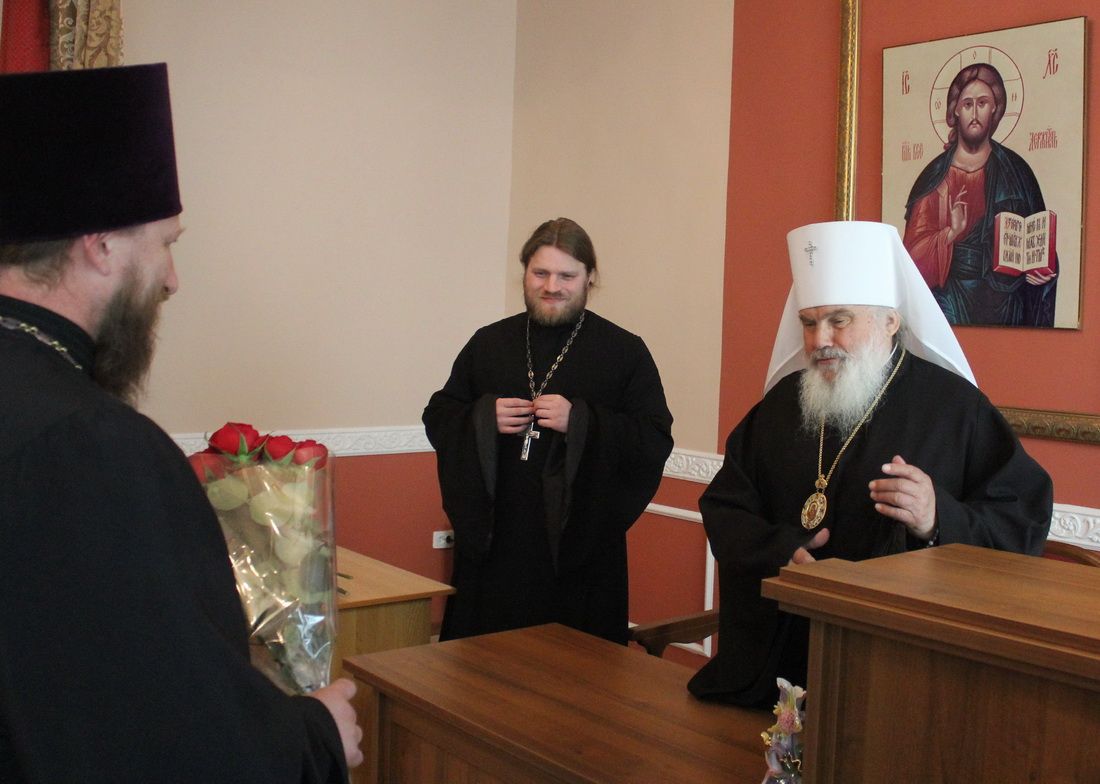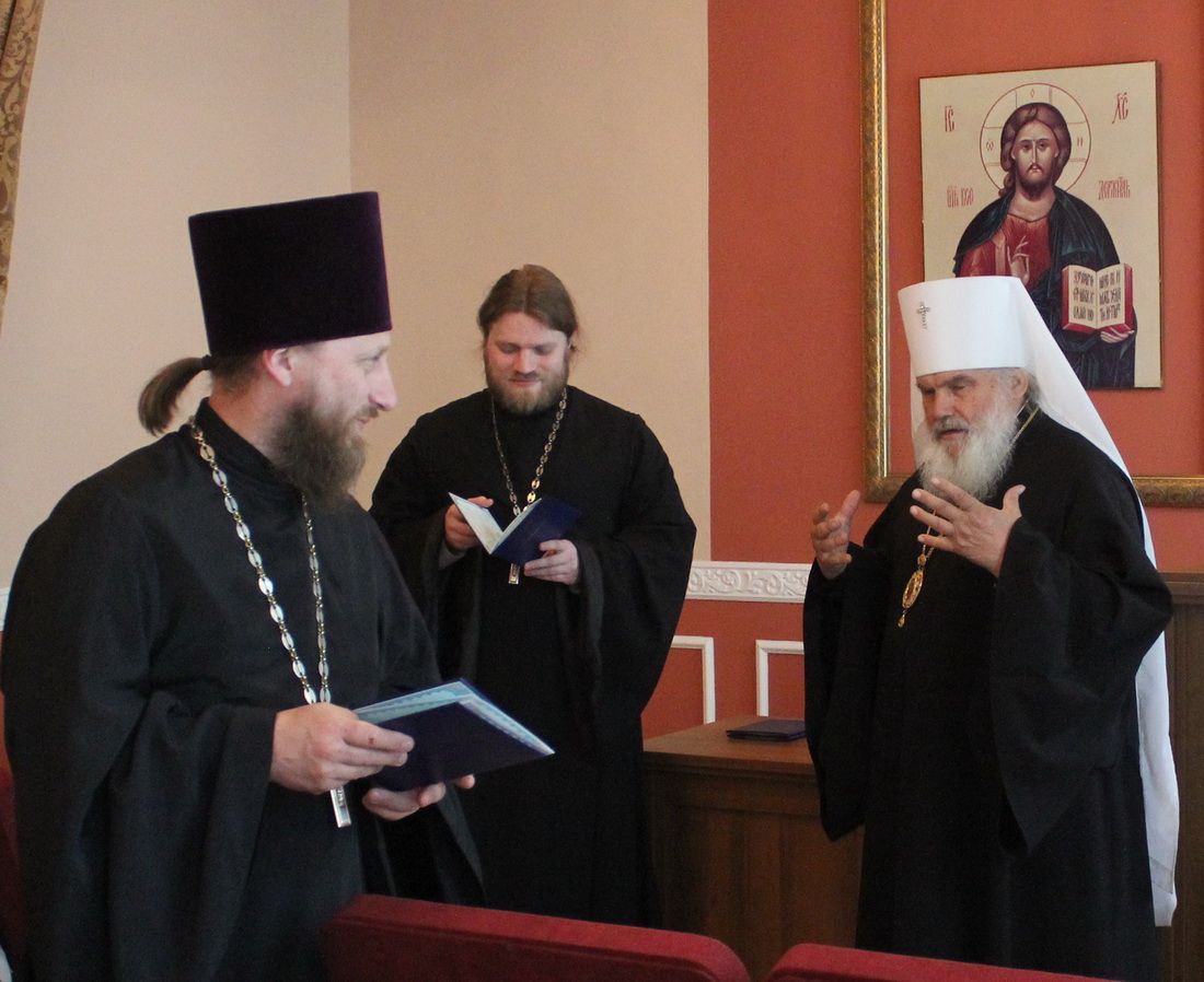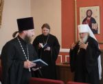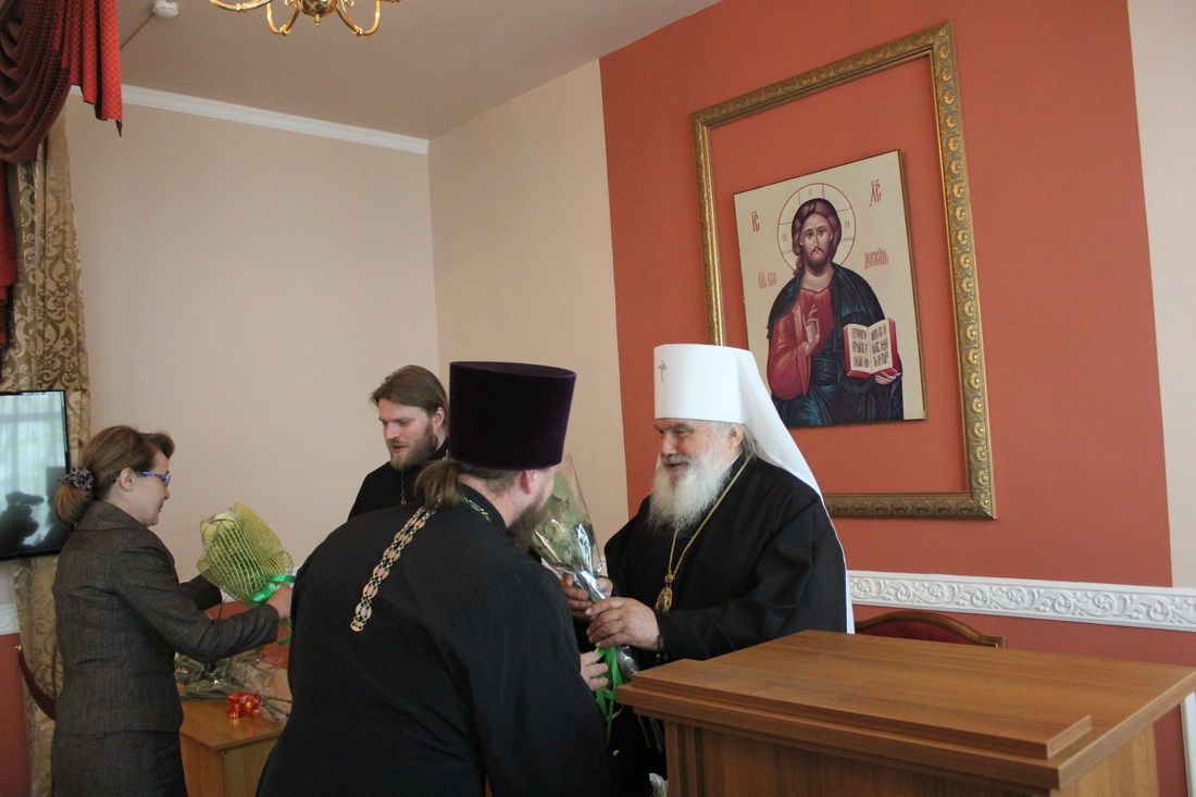 Митрополит Вениамин тепло поздравил выпускников с окончанием Дальневосточного Федерального Университета и выразил уверенность в том, что знания, приобретённые в области теологии, они используют на благо Матери-Церкви. Протоиерей Ростислав Мороз предупредил бывших студентов о том, как быстро выветриваются знания из головы, если ими активно не пользоваться, и призвал делиться приобретёнными знаниями на катехизаторских курсах, огласительных беседах и т.п. Он отметил, что преподаватели при подготовке к лекции обновляют знания, отыскивают новые разработки, словом держат себя в тонусе, обучая других, продолжают обучаться сами.
